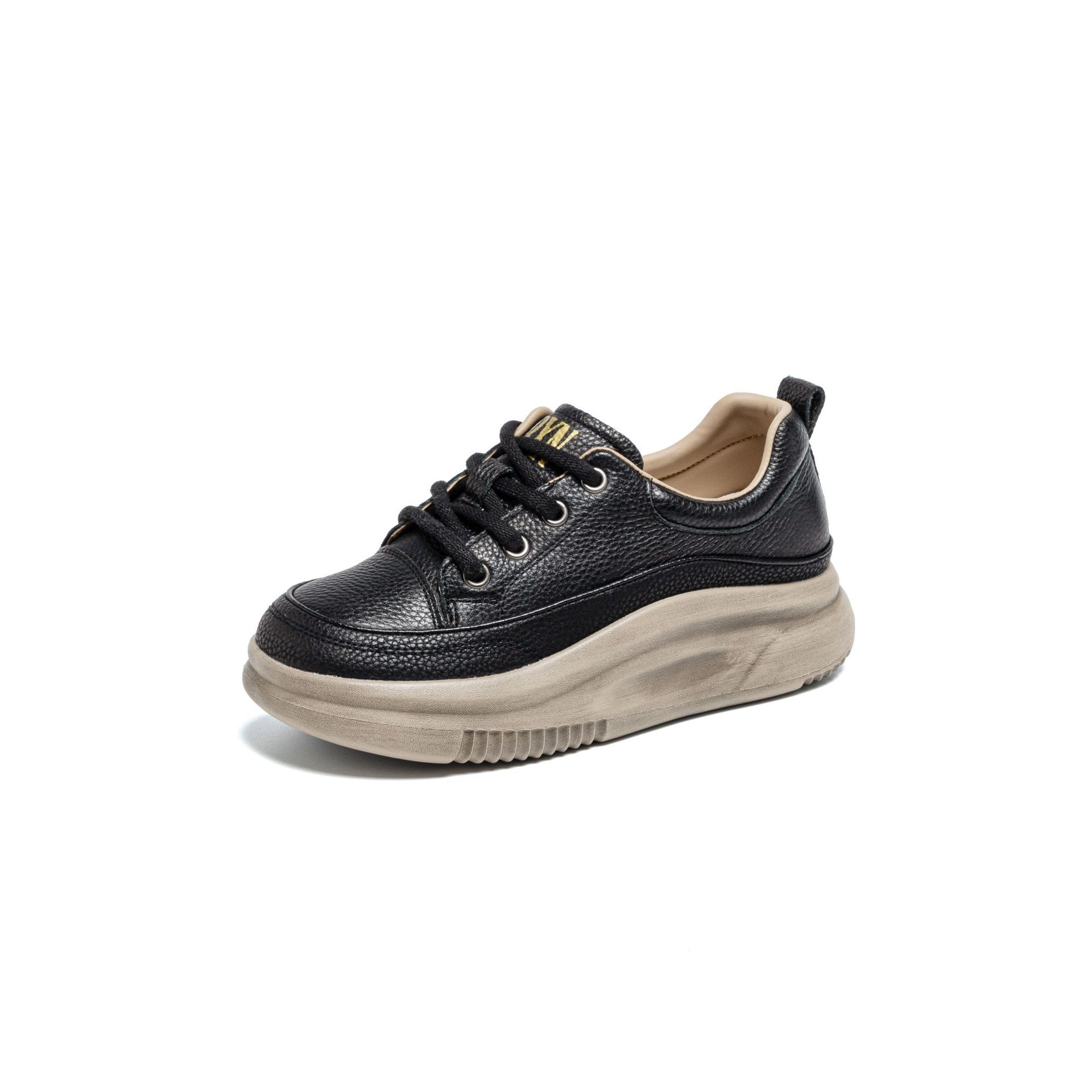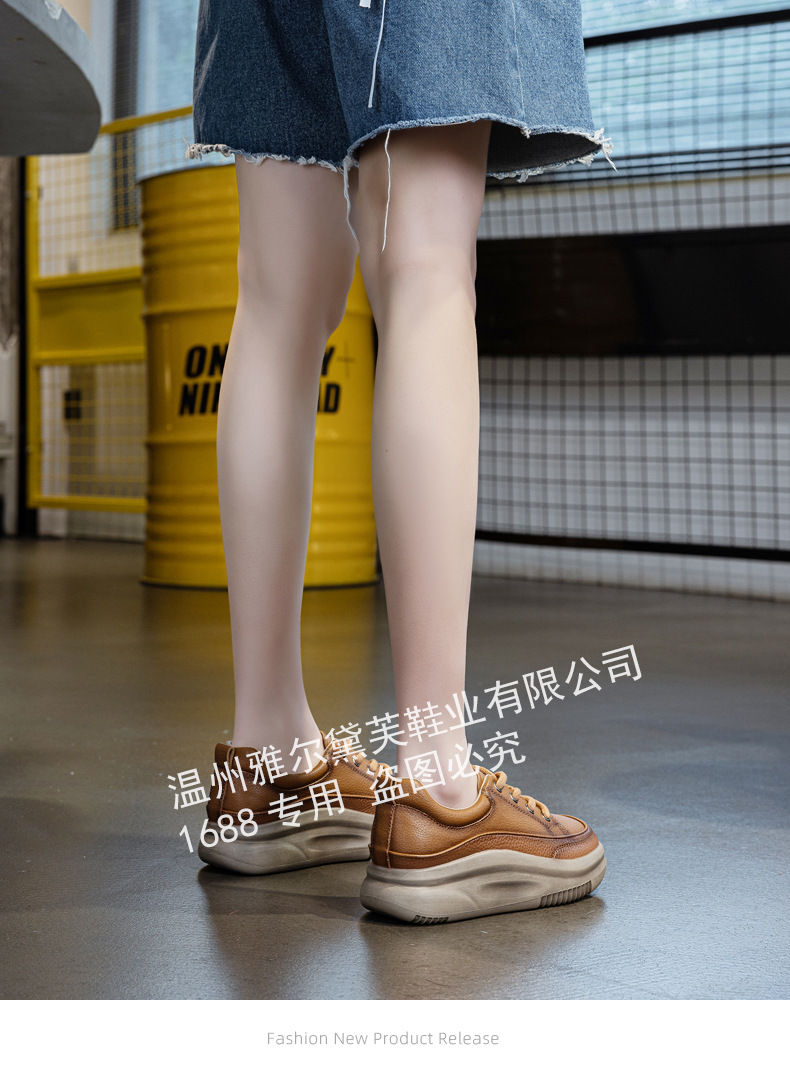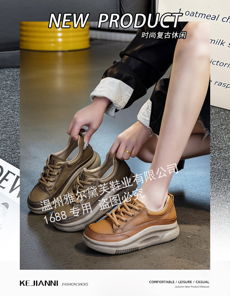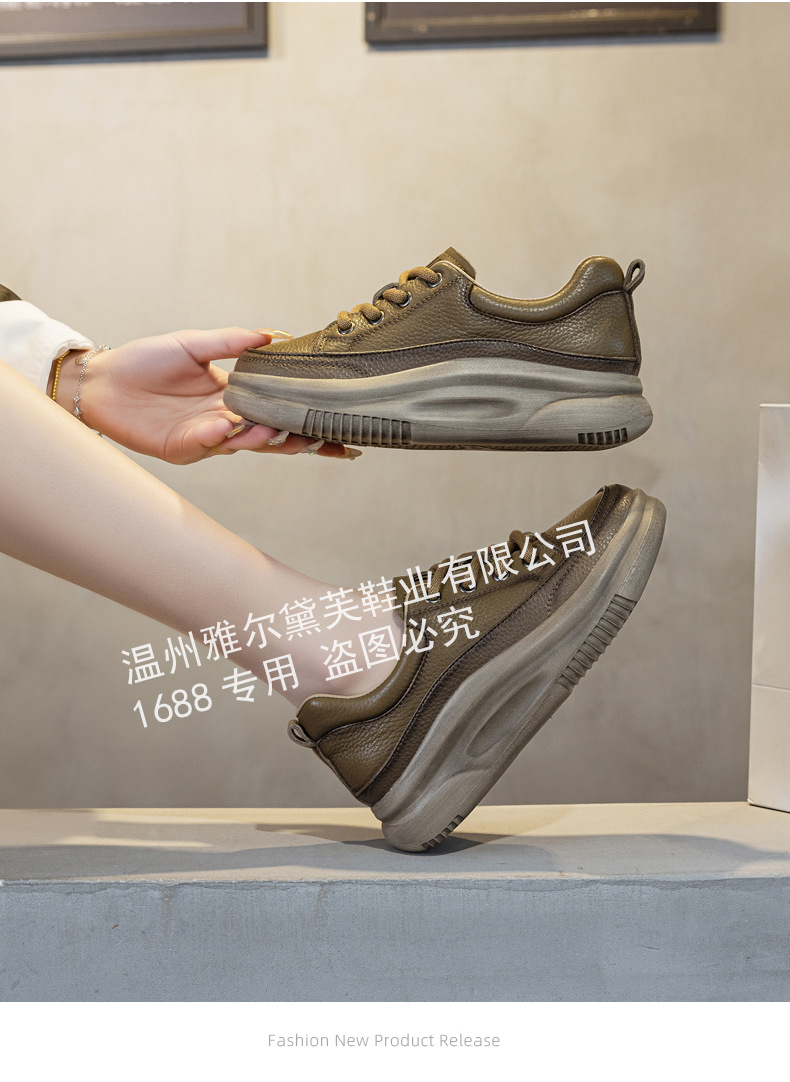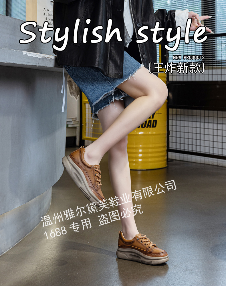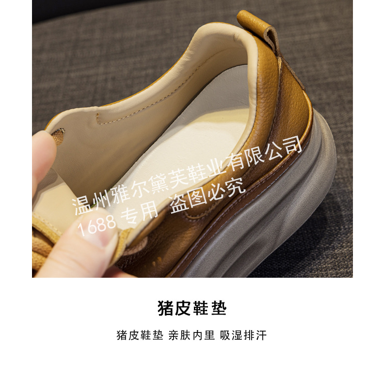 1층 소가죽 두꺼운 밑창 여성 신발 스포츠 캐주얼 신발 여성 봄 신상 다용도 통기성 레이스업 천연 가죽 여성 신발