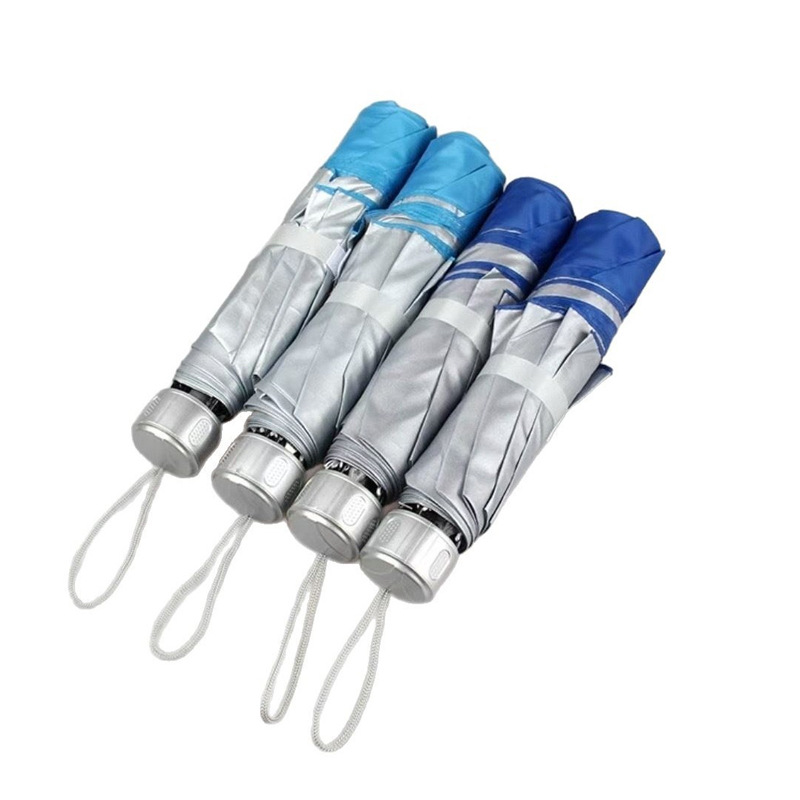 도매 우산 공급 7 뼈 세 접는 손 오픈 7K 실버 자외선 차양 우산 접이식 비 우산