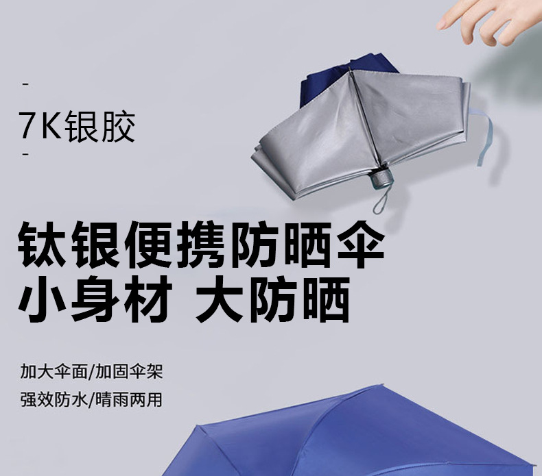 도매 우산 공급 7 뼈 세 접는 손 오픈 7K 실버 자외선 차양 우산 접이식 비 우산스토어 가기