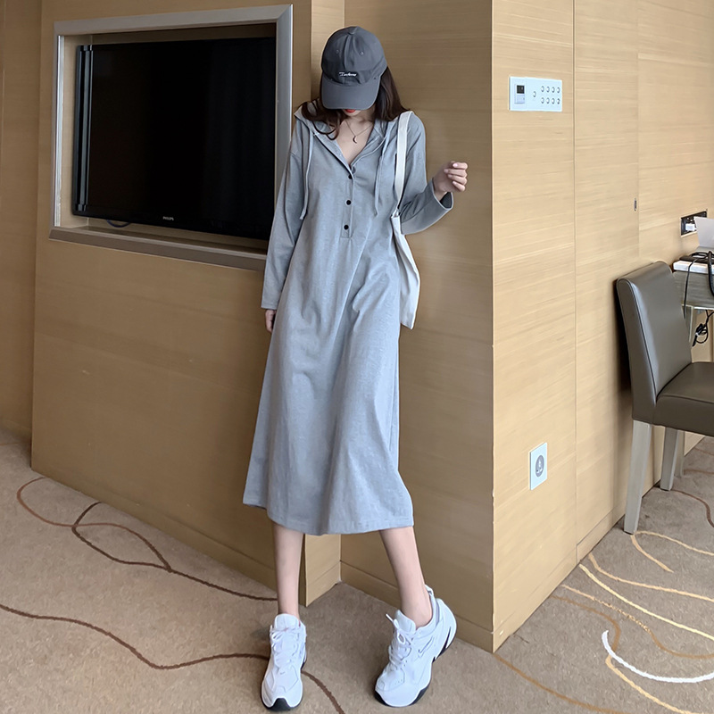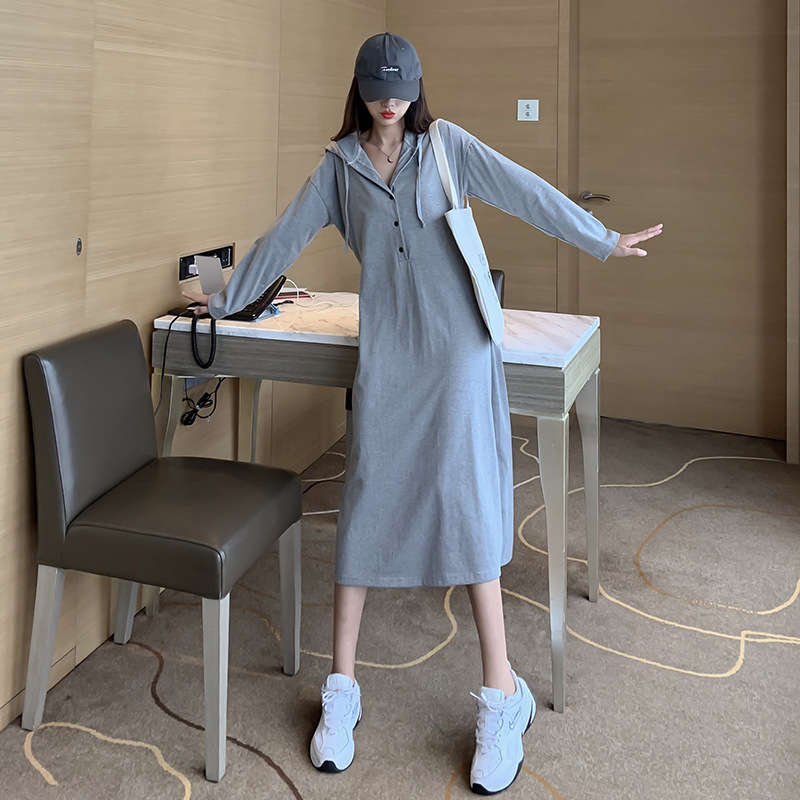 2021 년 봄 새로운 임산부 조끼 프랑스 복고풍 platycodon grandiflorum 긴 치마 원피스 후드 조끼 스커트 출산 원피스스토어 가기