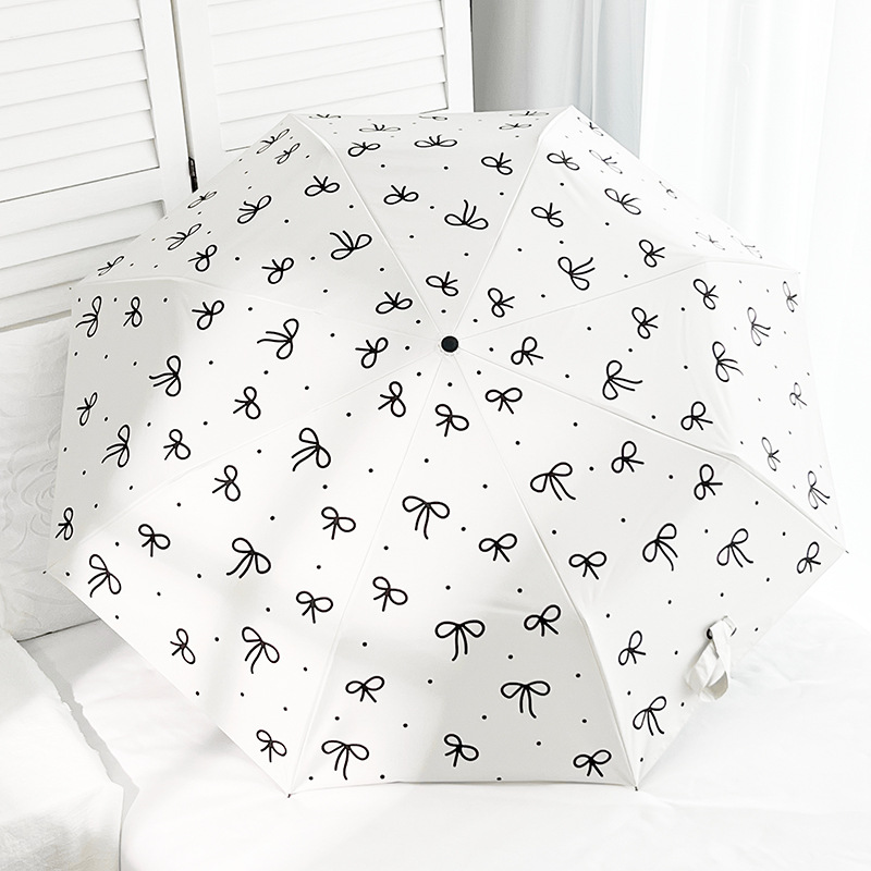 여성용 폴카 도트 리본 우산, 고급 태양 우산, 자외선 차단, 자외선 차단, 햇볕이 잘 드는 또는 비오는 날, 완전 자동스토어 가기