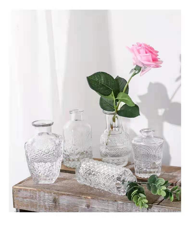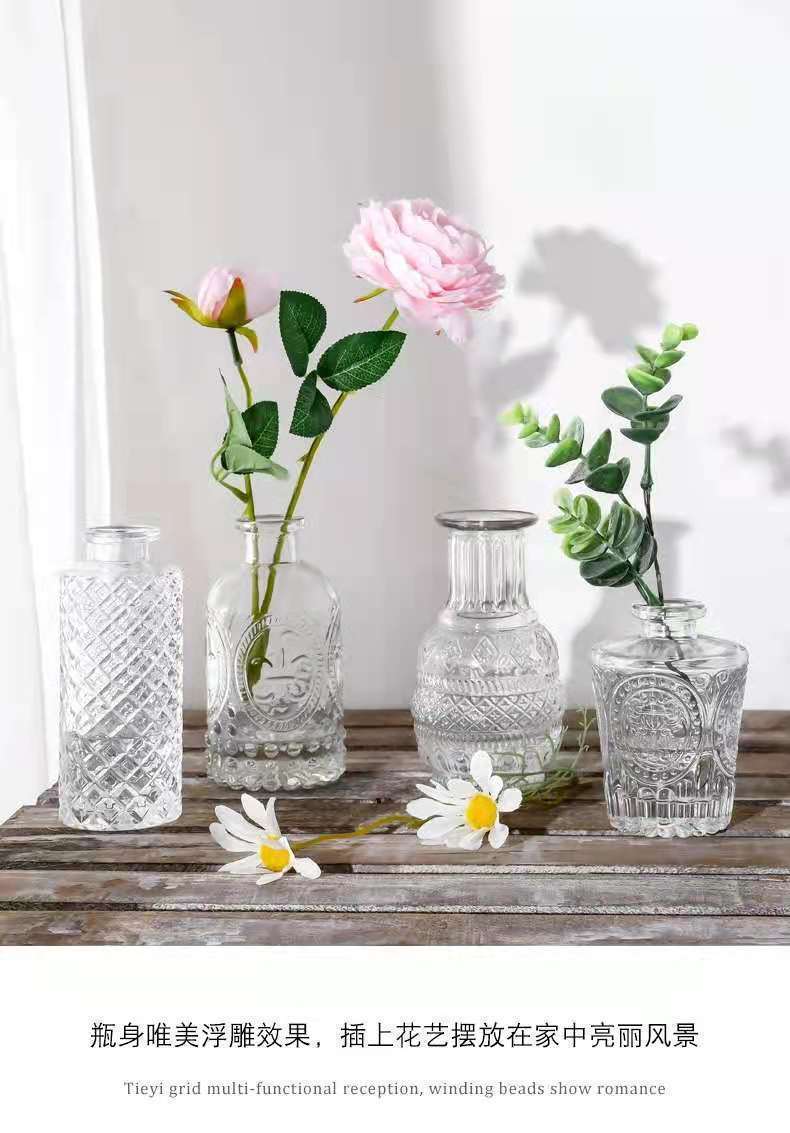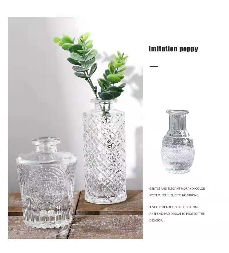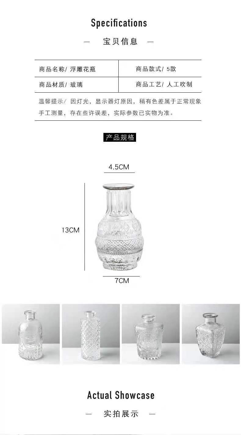 꽃병 레트로 마드리드 양각 간단한 크리스탈 작은 꽃병 녹색 식물 수경 용품 데스크탑 장식 장식품스토어 가기