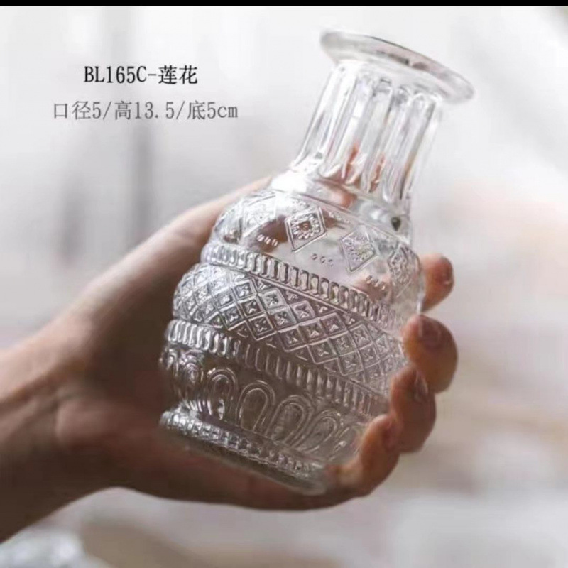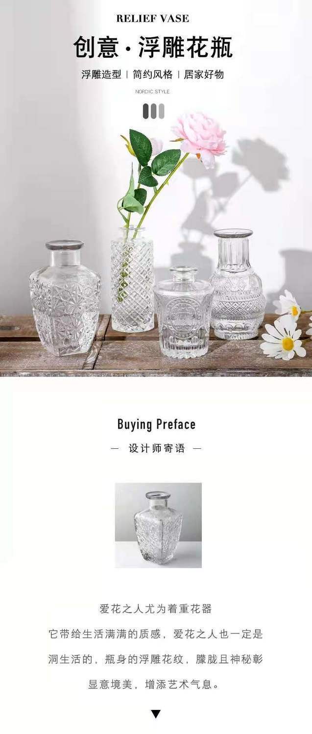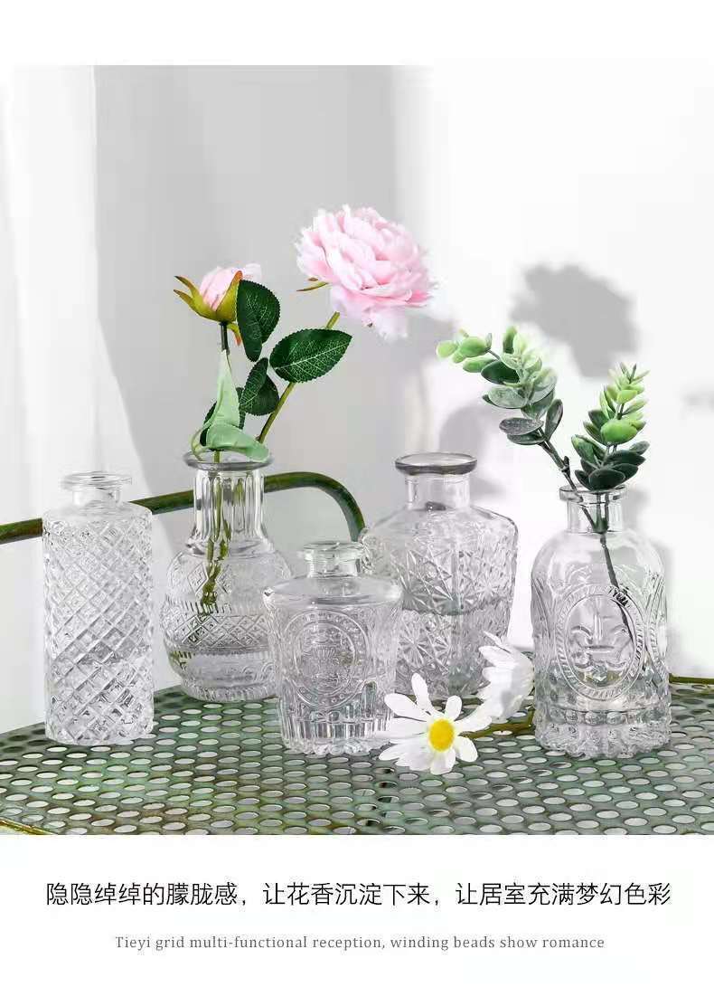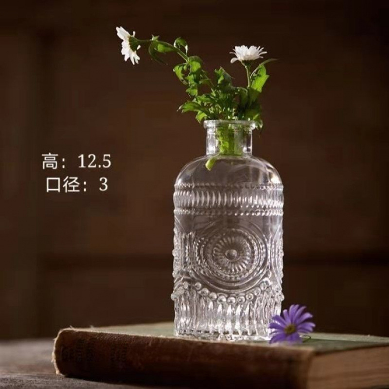 꽃병 레트로 마드리드 양각 간단한 크리스탈 작은 꽃병 녹색 식물 수경 용품 데스크탑 장식 장식품스토어 가기