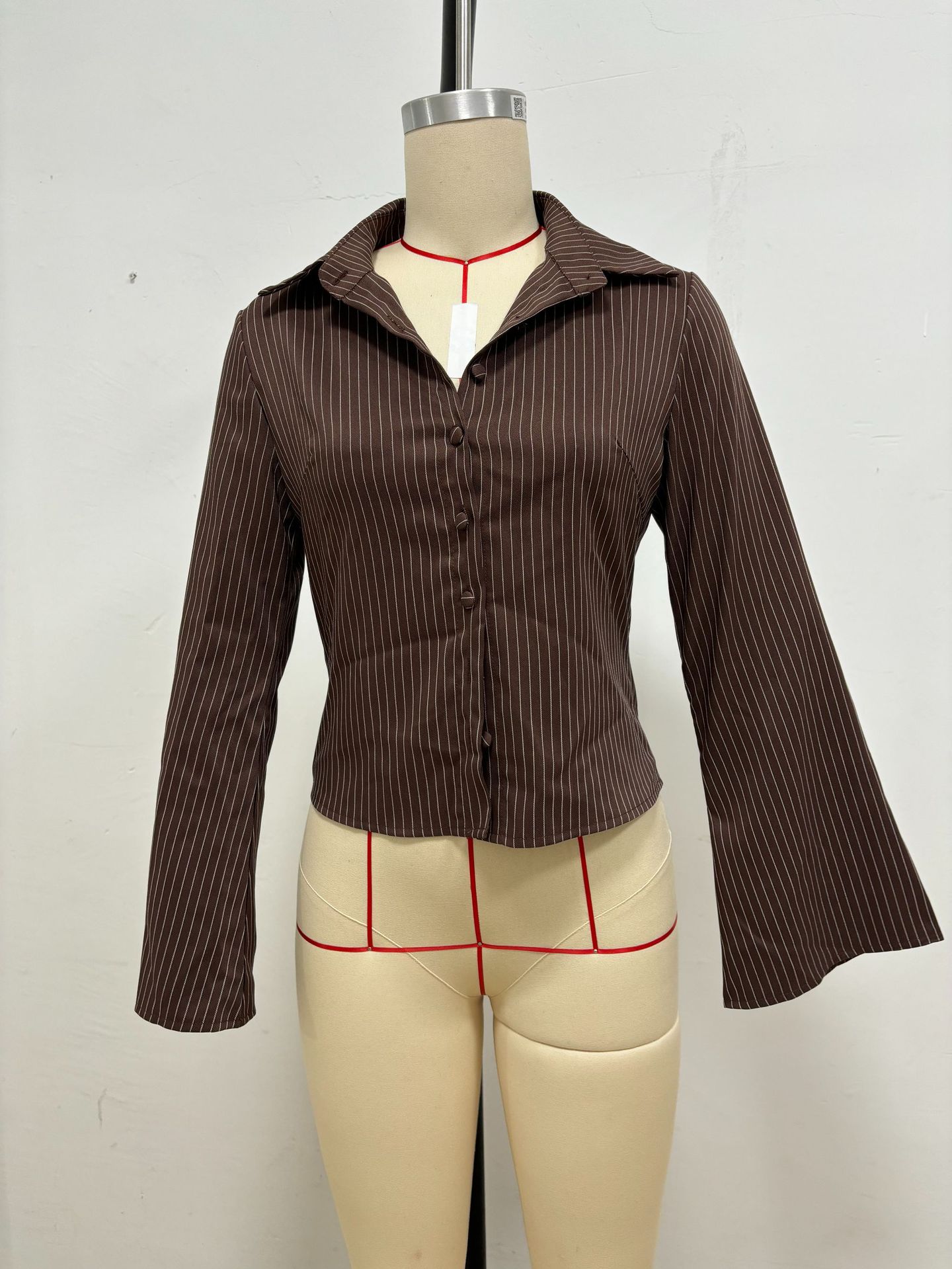 국경 뜨거운 새로운 영국 스타일 버튼 카디건 여름 의상 여성 패션 줄무늬 셔츠 여성의 여름 폴로 셔츠