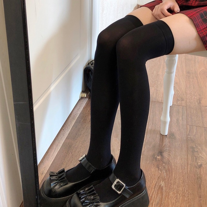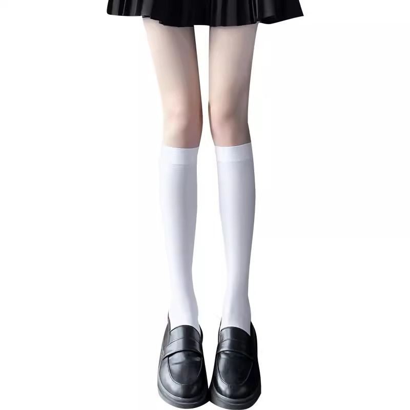 검은 색 무릎 양말 여성의 봄과 여름 얇은 흰색 실크 스타킹 Jk 허벅지 양말 블랙 실크 하이 스타킹 일본 화이트 실크 스타킹스토어 가기