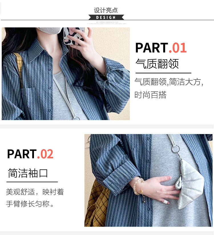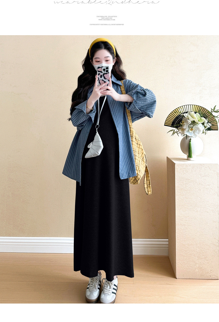 출산 2025 새로운 한국 패션 느슨한 슬림 빅 원피스 줄무늬 셔츠 투피스 캐주얼 세트스토어 가기
