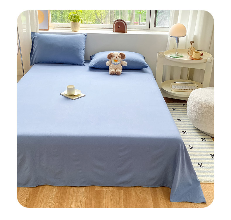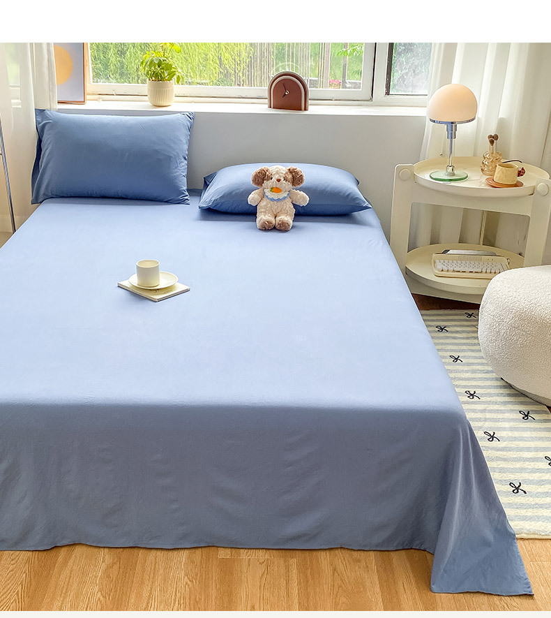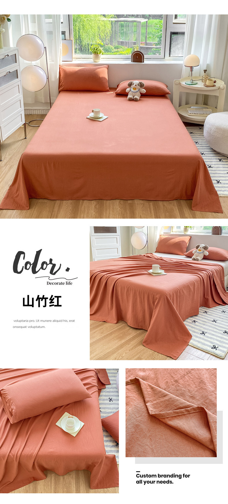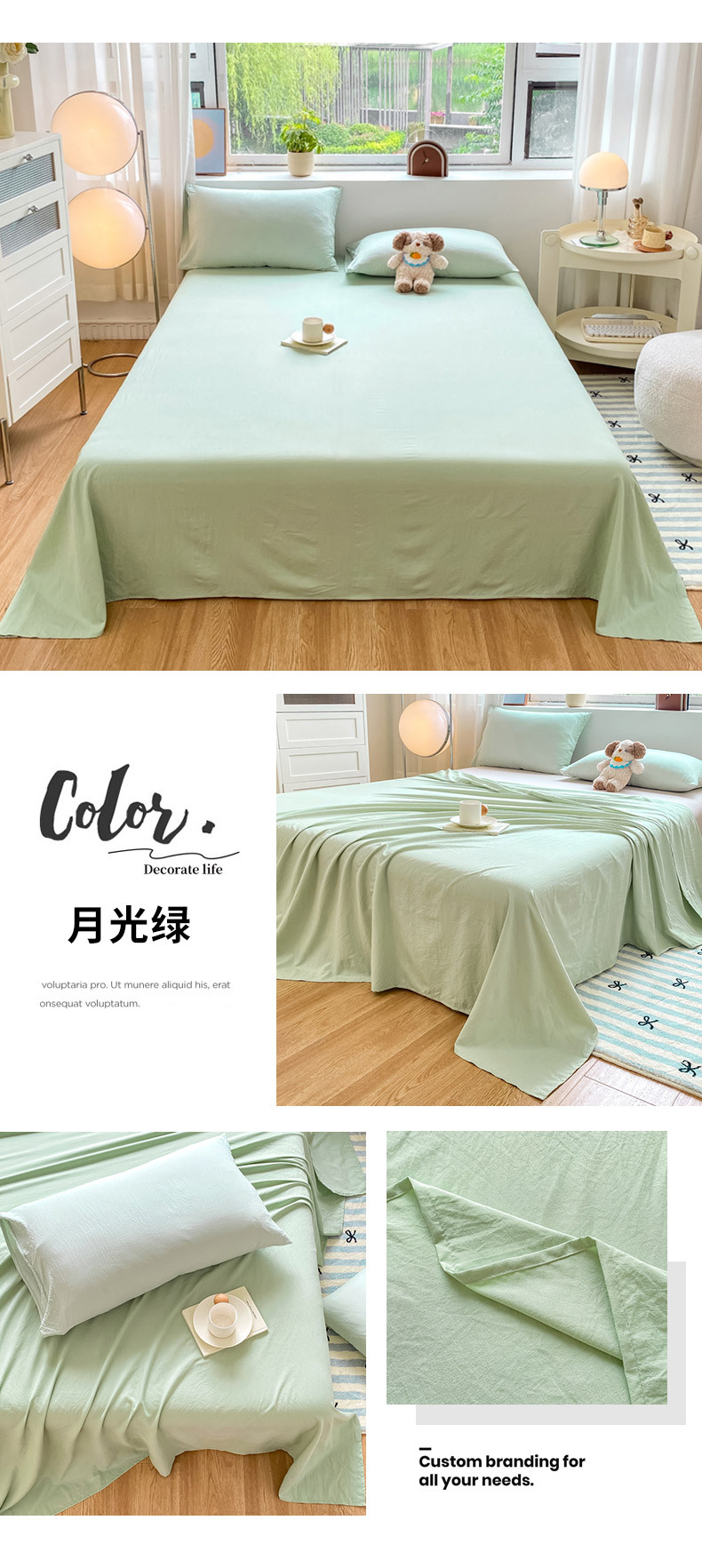 클래스 A 모성 및 유아 등급 솔리드 컬러 세척 코튼 싱글 침대 시트 퓨어 코튼 슈퍼 소프트 클라우드 코튼 간단한 침대 시트 베개 케이스 3 피스 세트