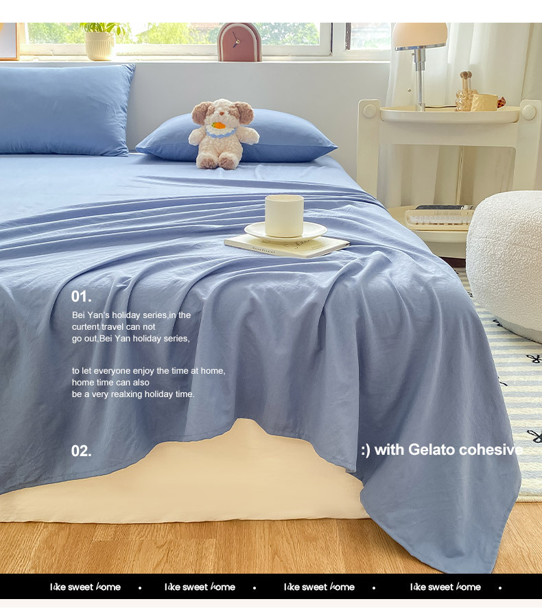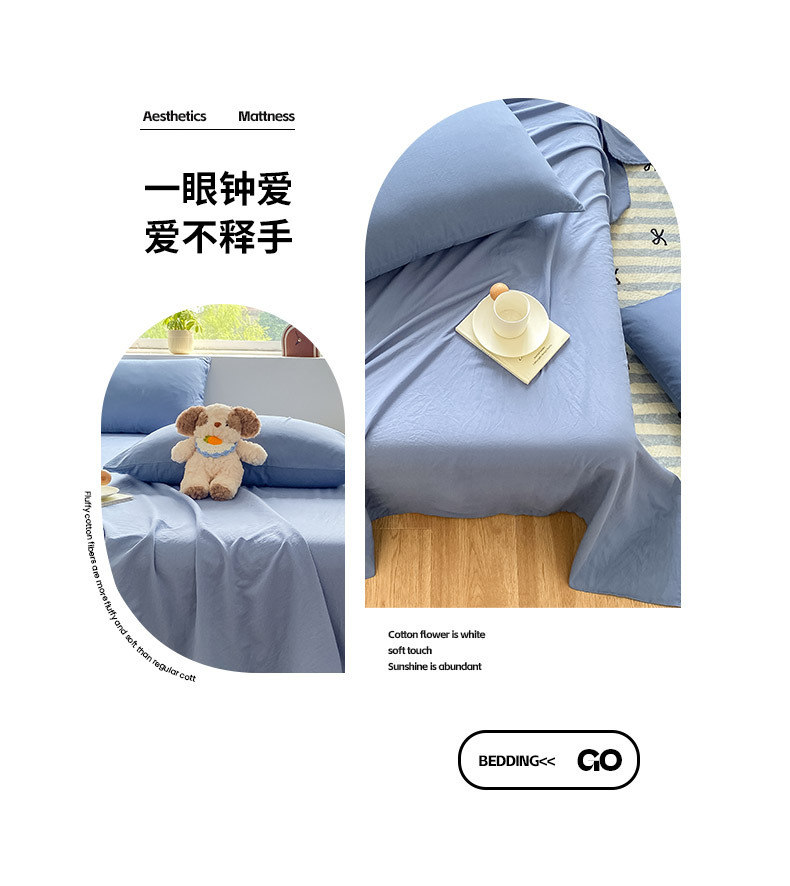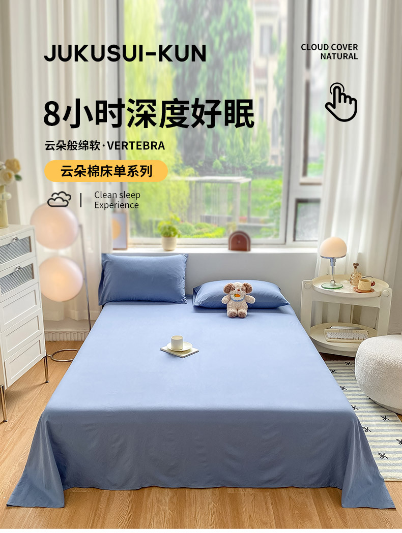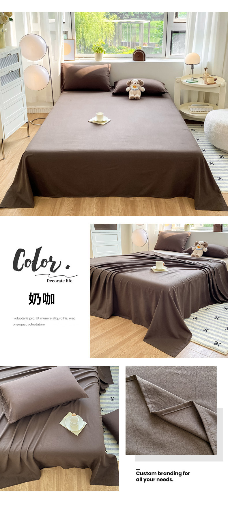 클래스 A 모성 및 유아 등급 솔리드 컬러 세척 코튼 싱글 침대 시트 퓨어 코튼 슈퍼 소프트 클라우드 코튼 간단한 침대 시트 베개 케이스 3 피스 세트