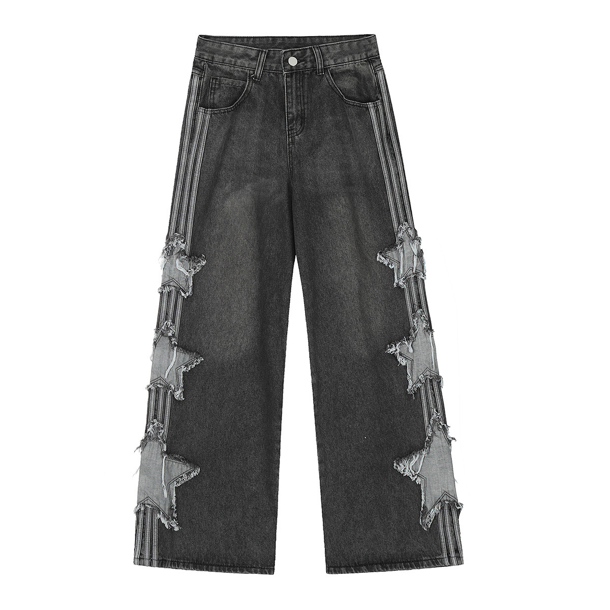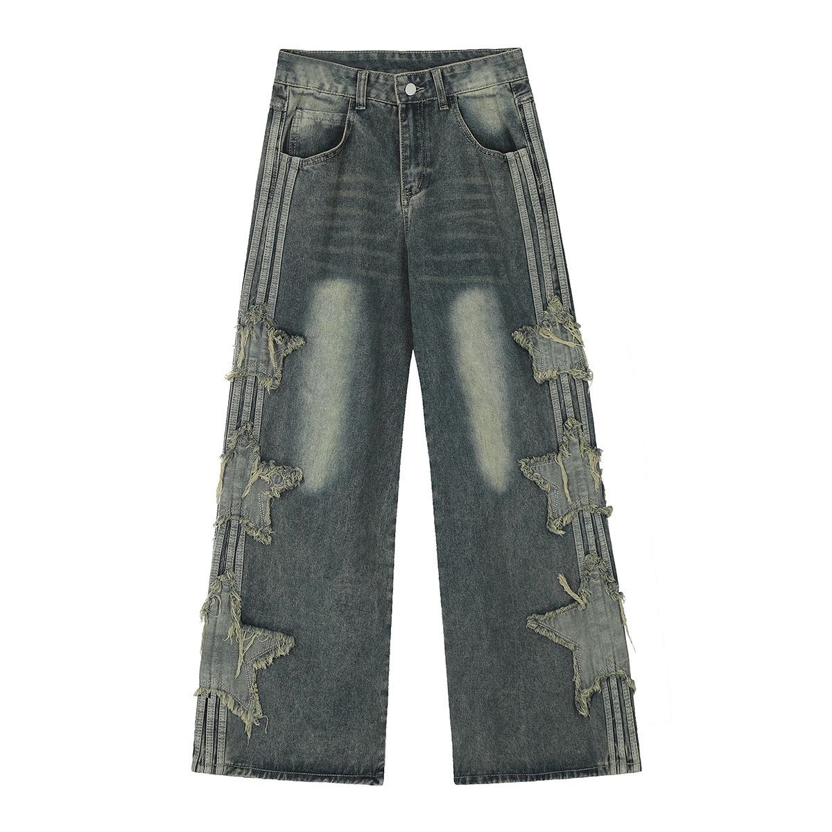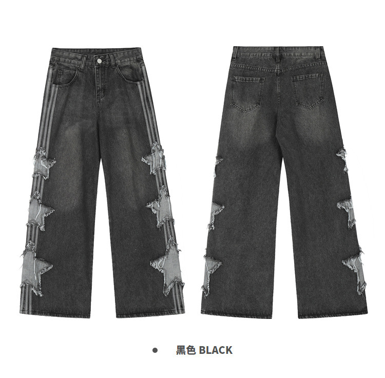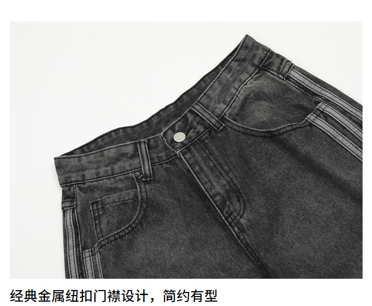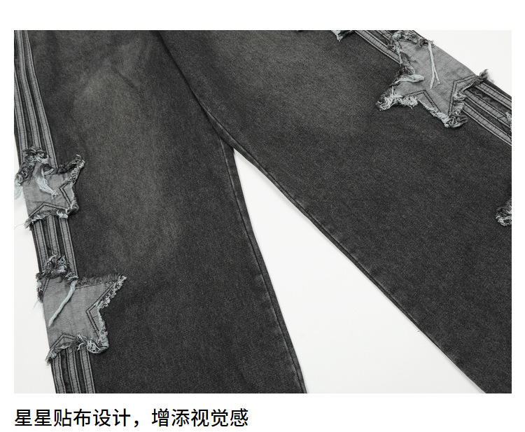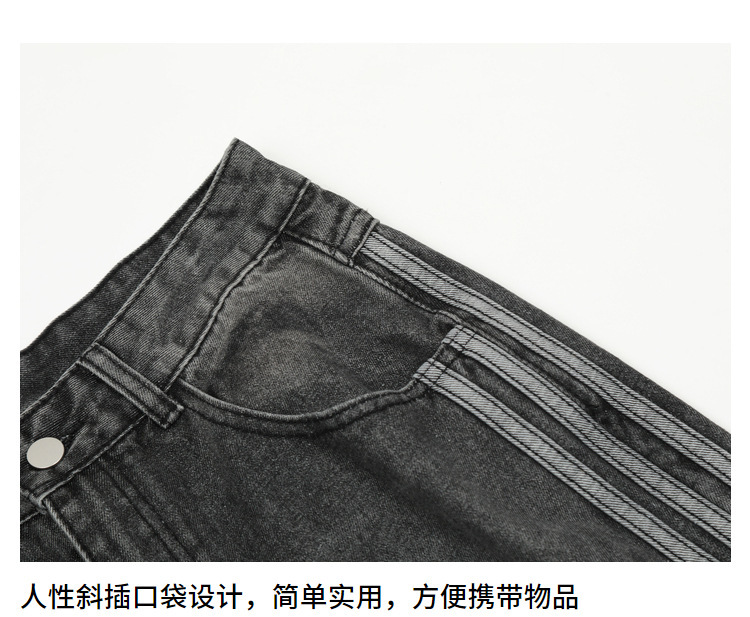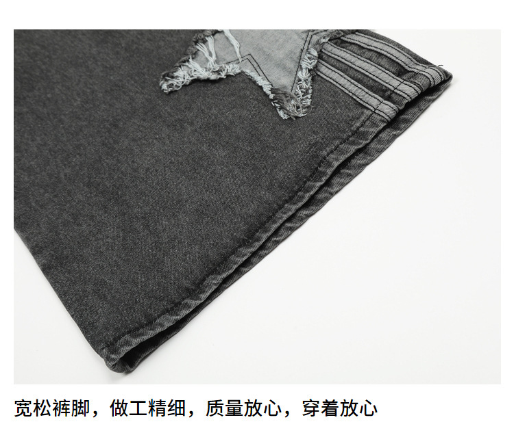 아메리칸 스타일 하이 스트리트 스타 테이프 청바지 남성 여름 새로운 느슨한 스트레이트 딥 트렌디 브랜드 와이드 다리 바지스토어 가기