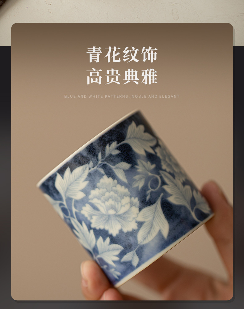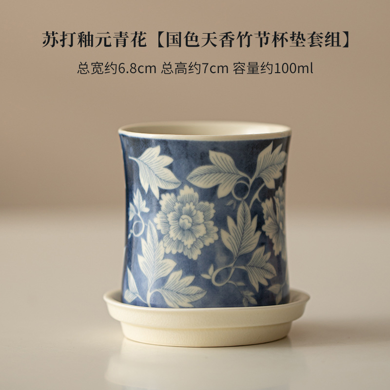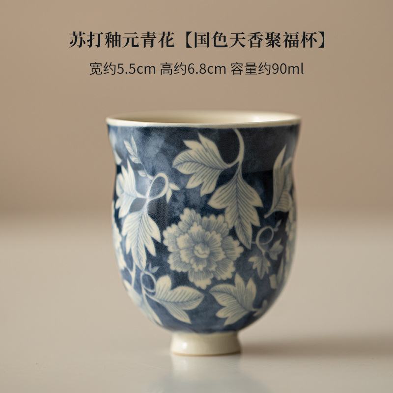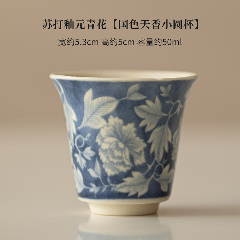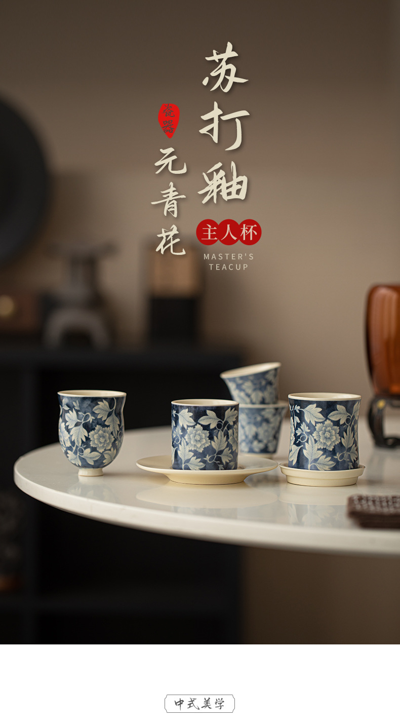 소다 유약 원 블루와 화이트 마스터 컵 Guofeng 홈 오프닝 세라믹 티 컵 차 테이스팅 컵 코스터 티 웨어