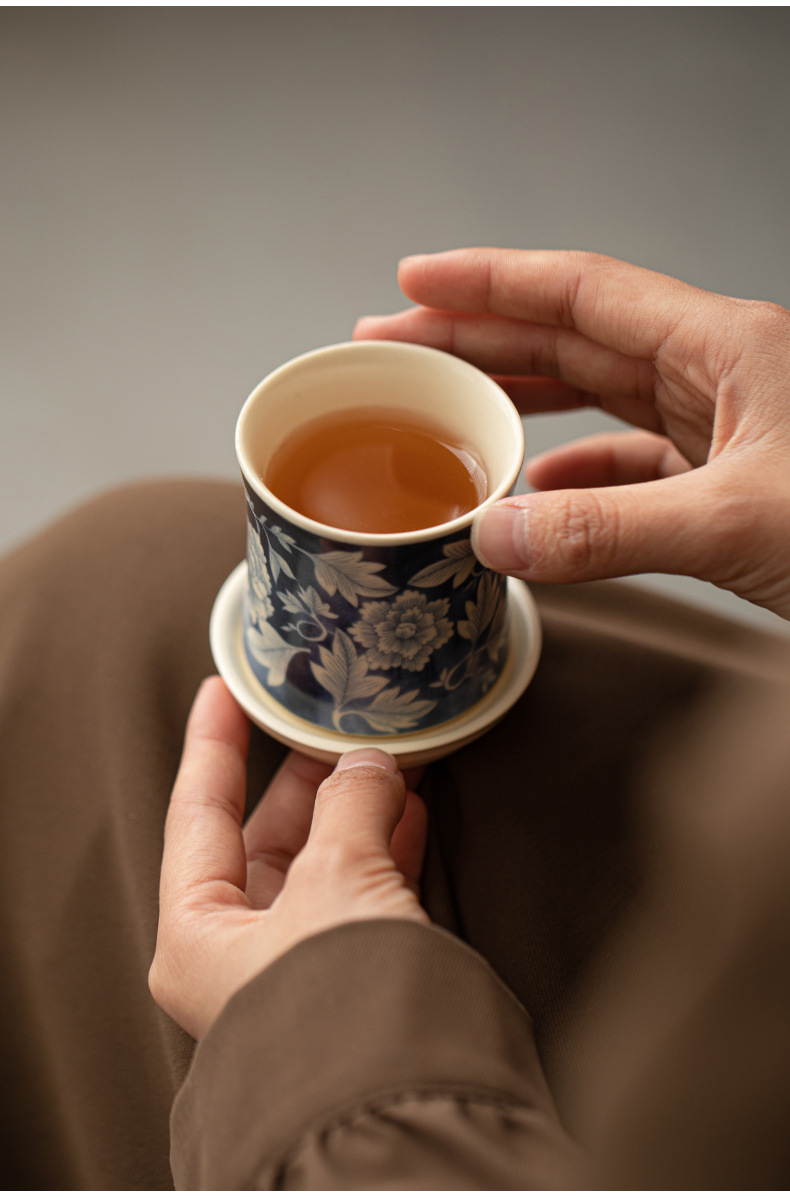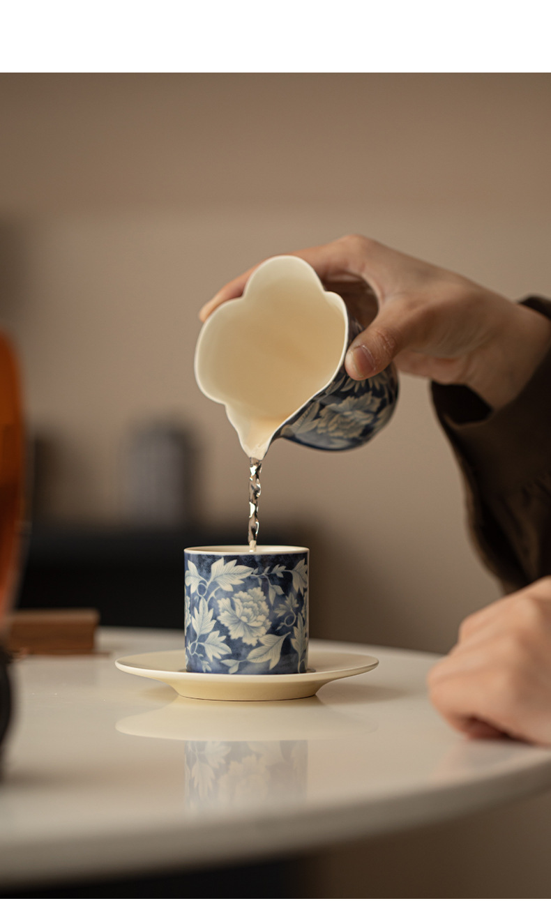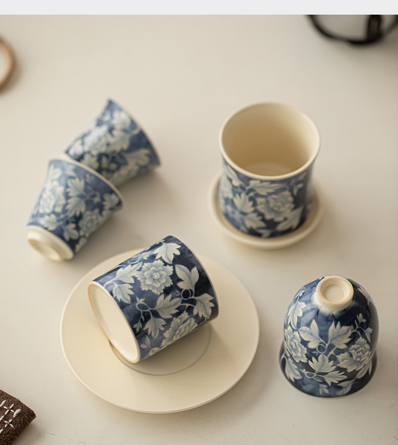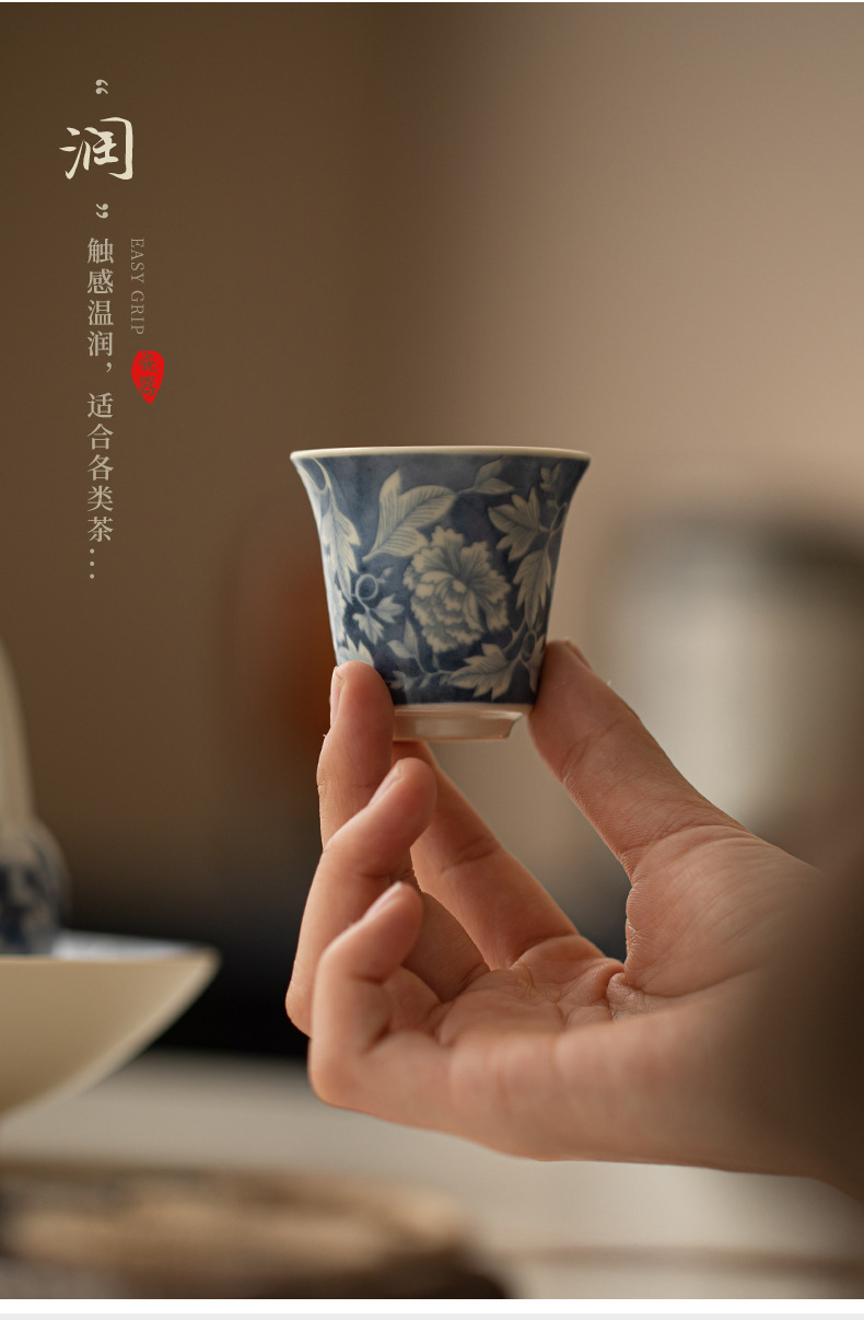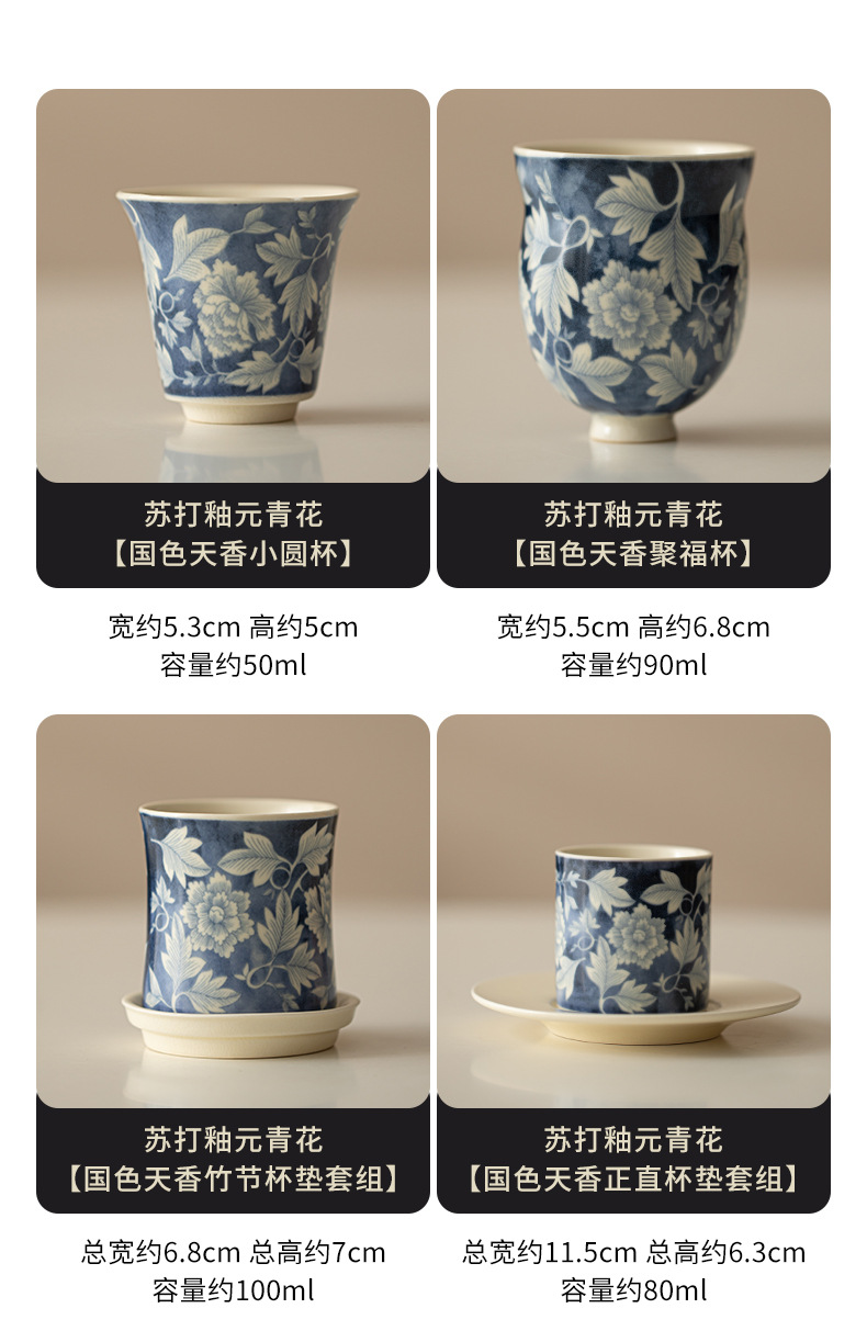 소다 유약 원 블루와 화이트 마스터 컵 Guofeng 홈 오프닝 세라믹 티 컵 차 테이스팅 컵 코스터 티 웨어