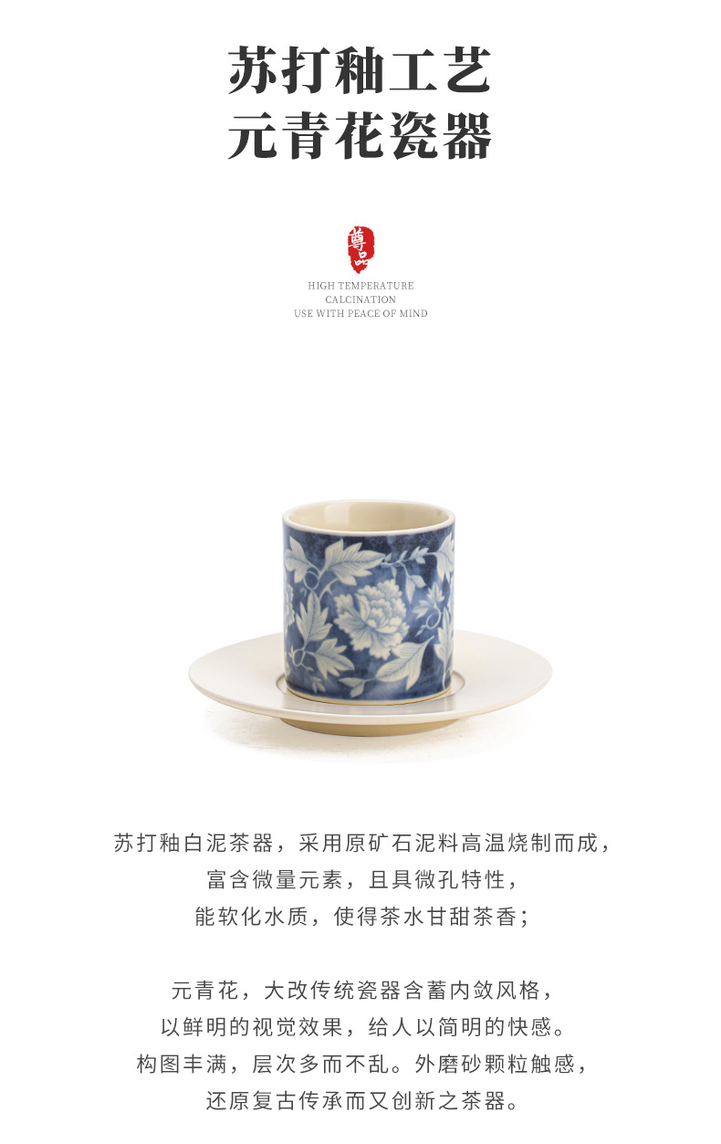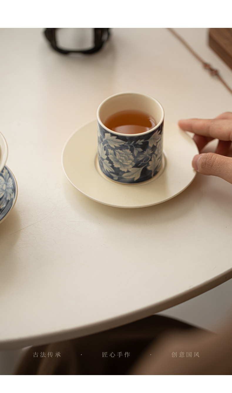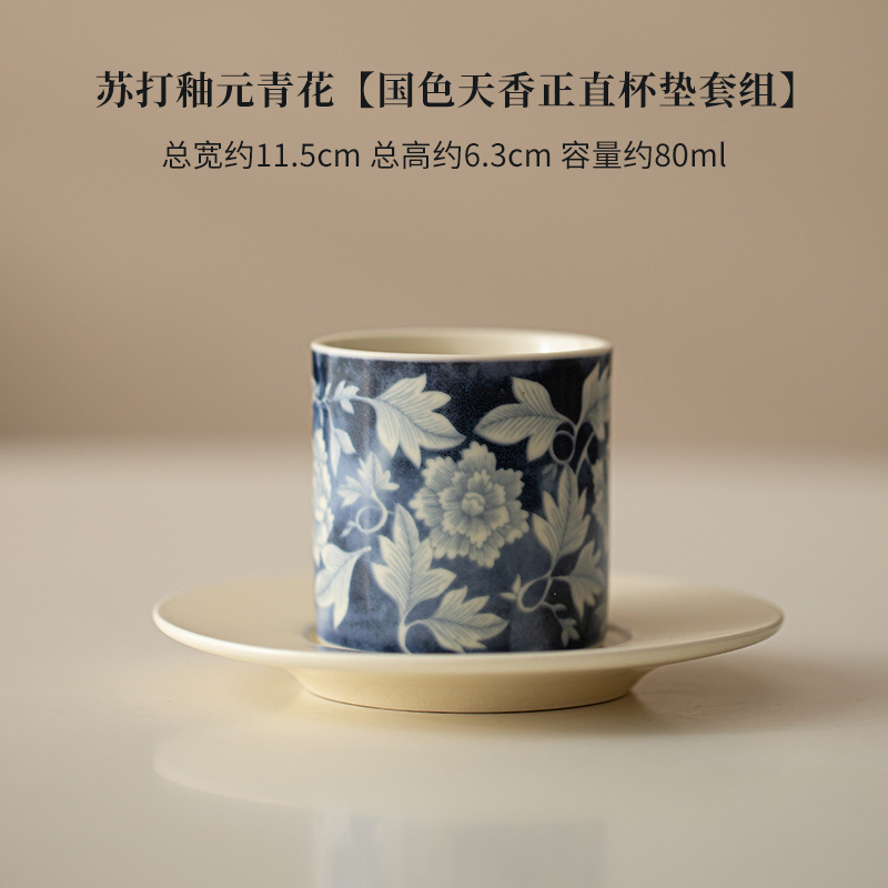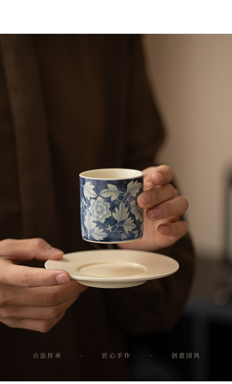 소다 유약 원 블루와 화이트 마스터 컵 Guofeng 홈 오프닝 세라믹 티 컵 차 테이스팅 컵 코스터 티 웨어스토어 가기