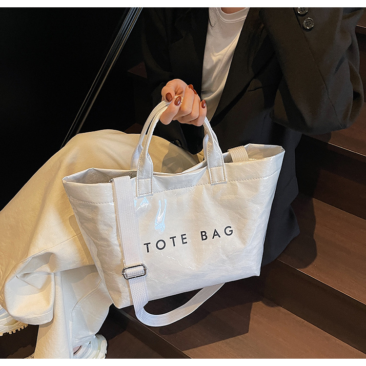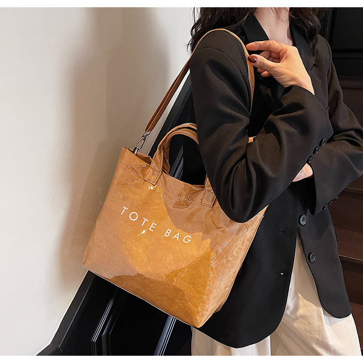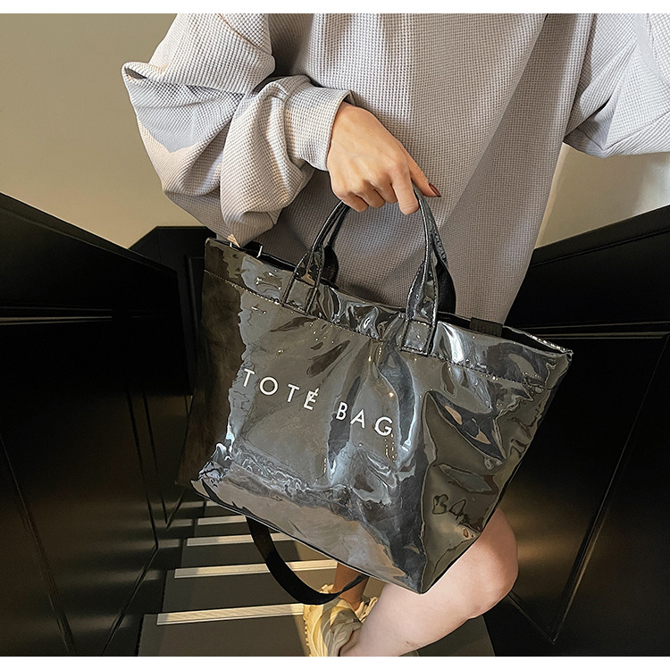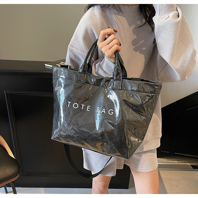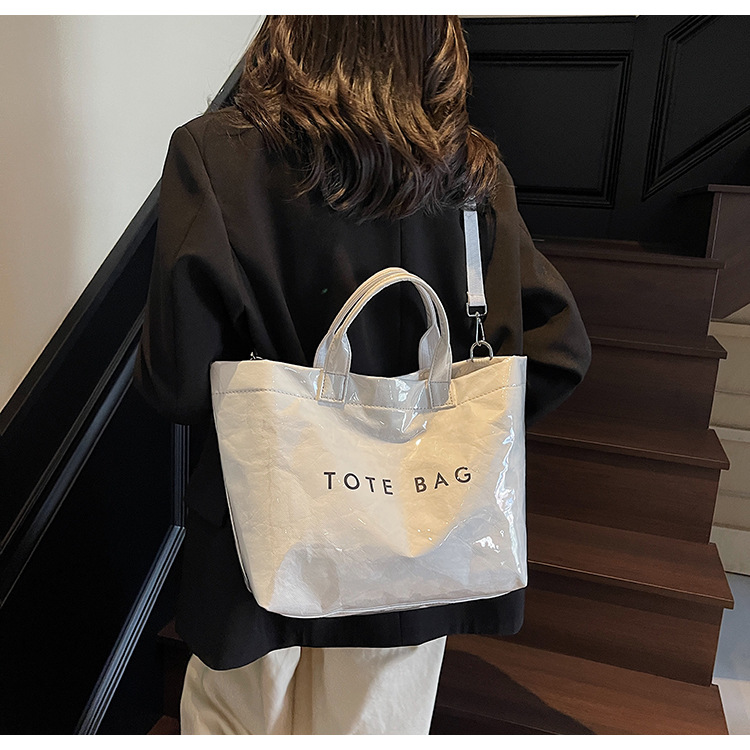 대용량 듀폰 종이 젤리 백 투명 PVC 방수 토트 백 경량 통근 토트 백 어깨 크로스 바디 백