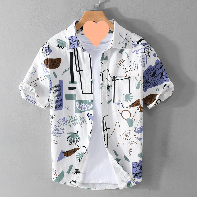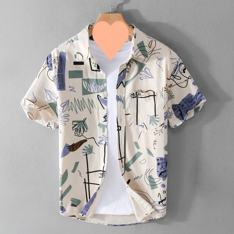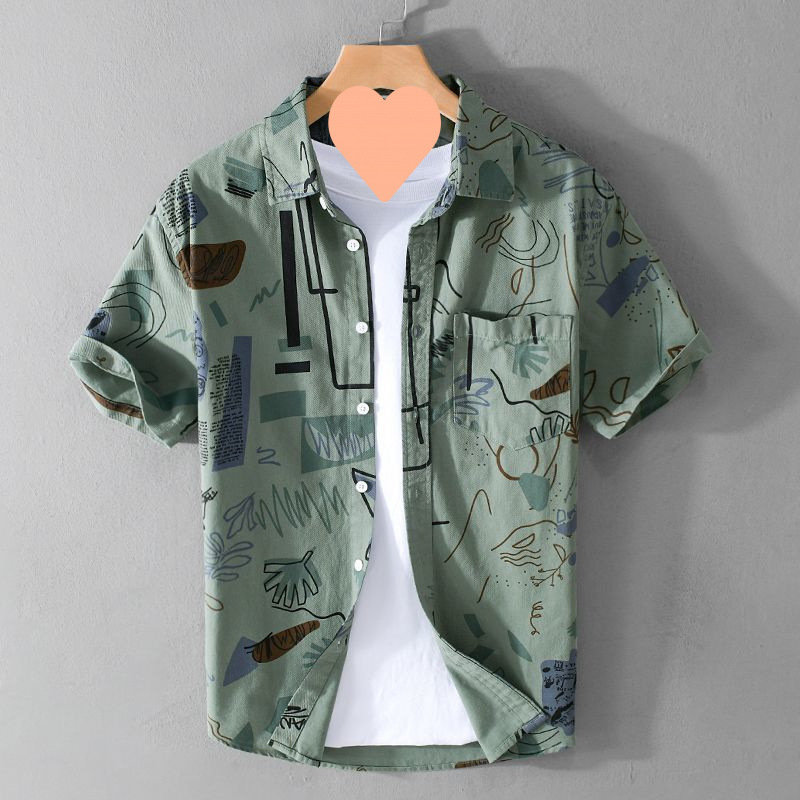 여름 캐주얼 비치 스타일 인쇄 반팔 남성 셔츠 편안한 느슨한 패셔블 핸섬 올 매치 남자 신선하고 옥