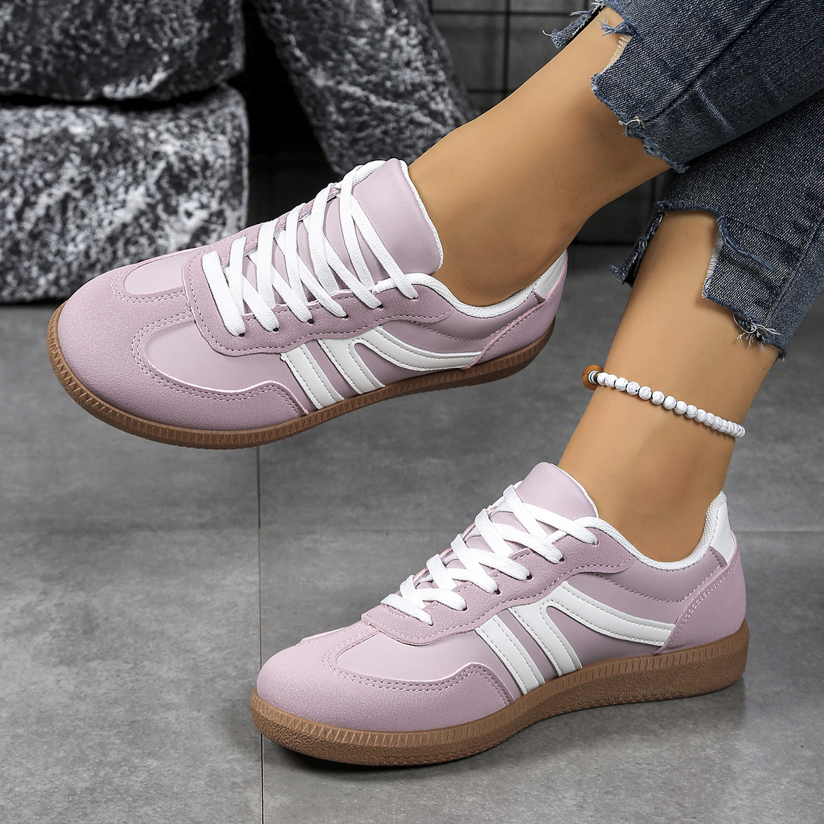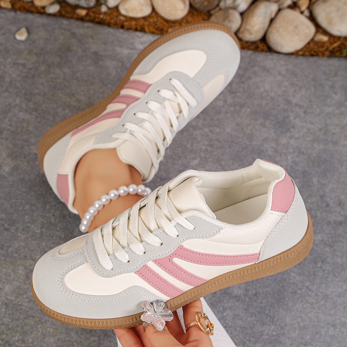 국경 간 여성용 대형 육군 훈련 신발 운동화 2025 새로운 유럽과 미국의 복고풍 색상 일치 플랫 신발 여성 도매