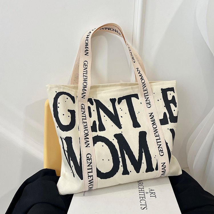 간단한 편지 캔버스 가방 여성의 새로운 예술적 Ins 스타일 대용량 어깨 가방 학생 클래스 토트 백 도매스토어 가기