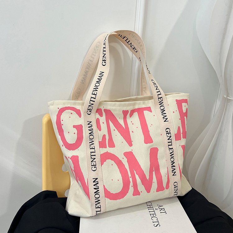 간단한 편지 캔버스 가방 여성의 새로운 예술적 Ins 스타일 대용량 어깨 가방 학생 클래스 토트 백 도매