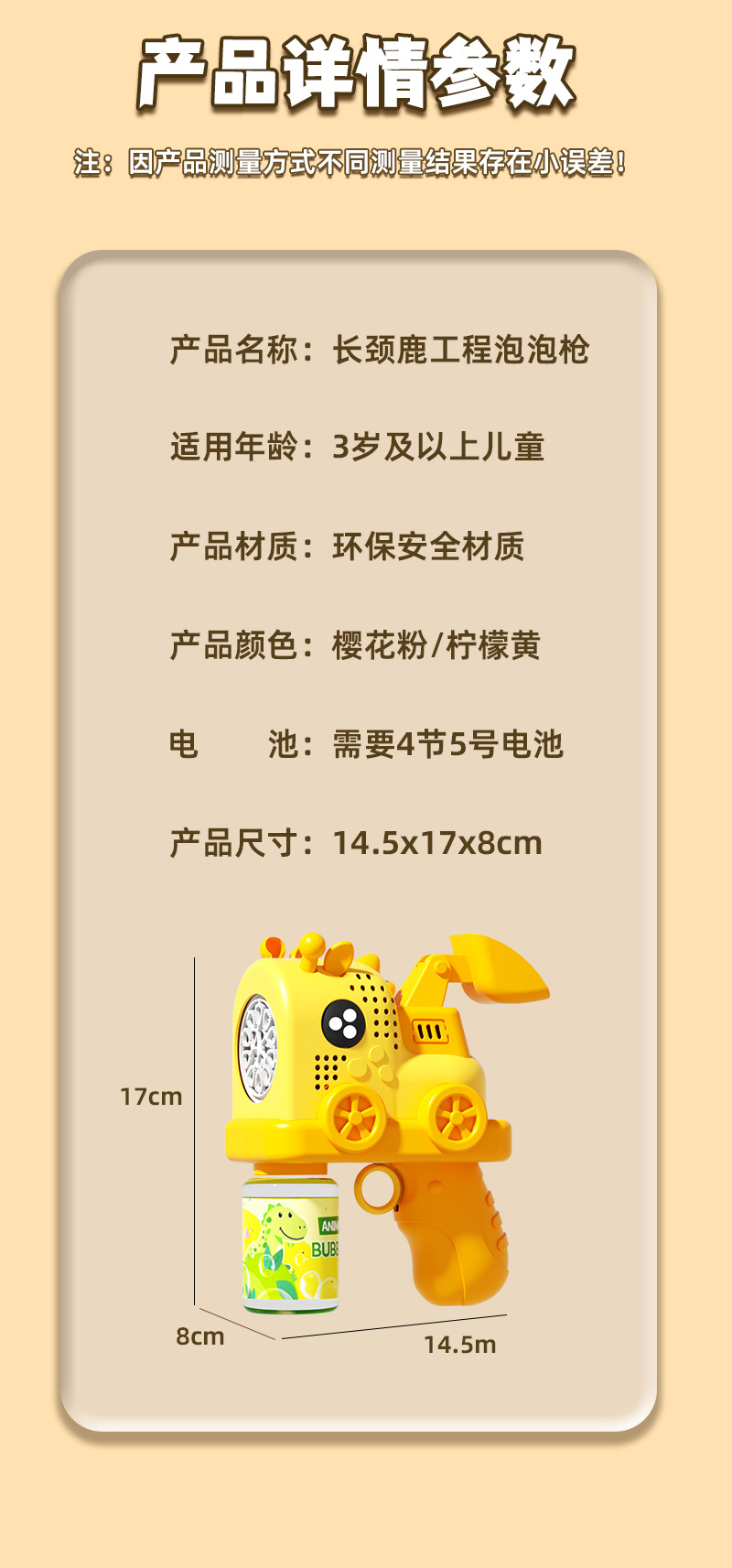 请注意!默认运费不是最终运费,下单后可以联系客服修改运费,产品价格不含税点,详情咨询客服,泡泡机请不要使用华太,南孚、金霸王、劲量、双鹿、等强碱性电池以免烧坏电机,因品牌电池容量太高,电流强,触头短!容易造成玩具电路损坏,使用普通的碳性电池,或者下单本店链接泡泡机专用电池即可!!!【产品利润微薄,如果使用其他电池导致不开机以及无法使用等情况一概与本店无关,拍下即默认此条款】