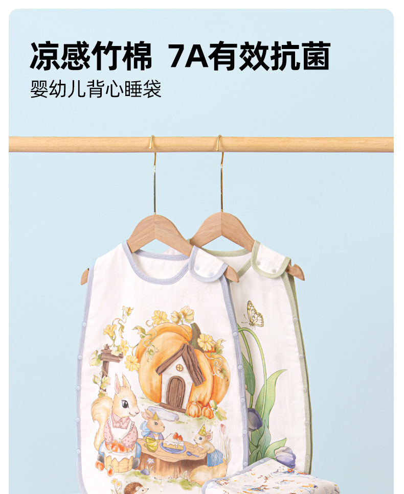 Meihuang Baby Vest 슬리핑 백 Tianzhu Cotton Gauze 아기 민소매 안티 콜드 슬립 벨리 보호 봄과 여름 안티 킥 퀼트스토어 가기