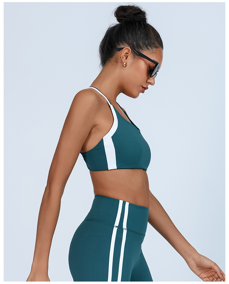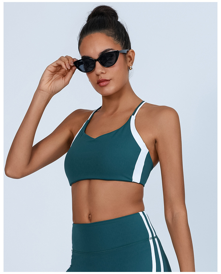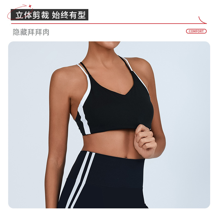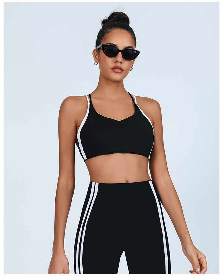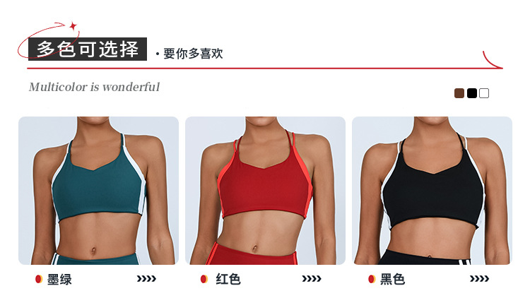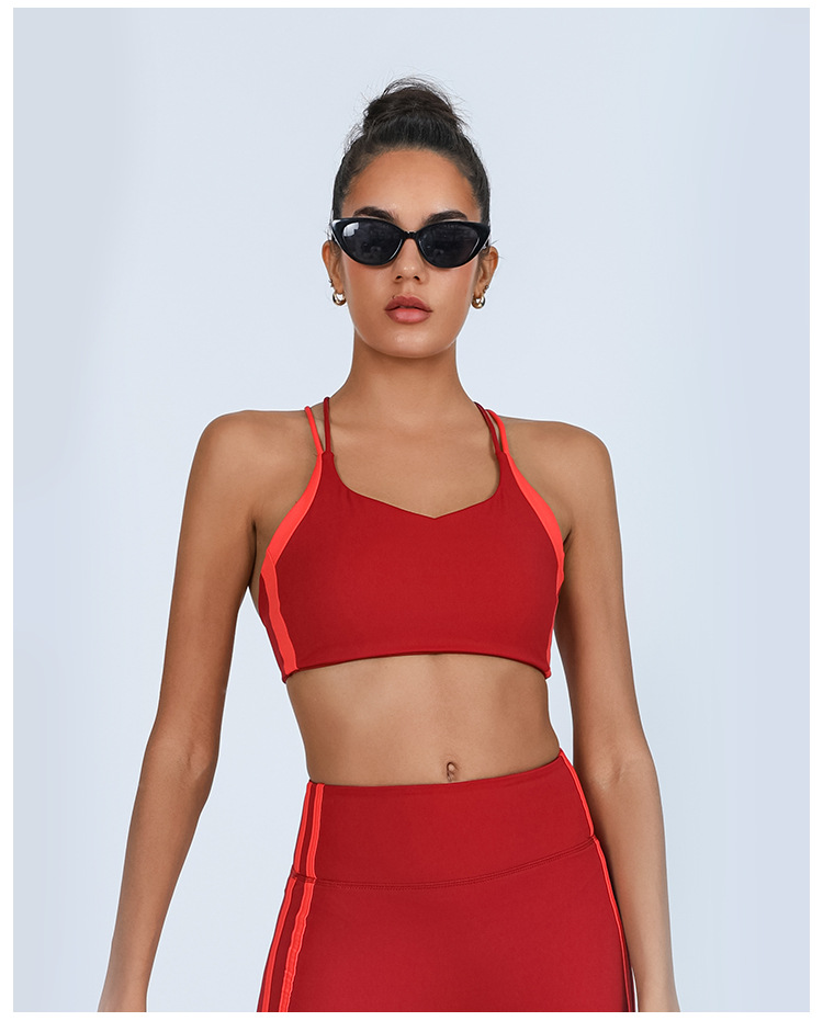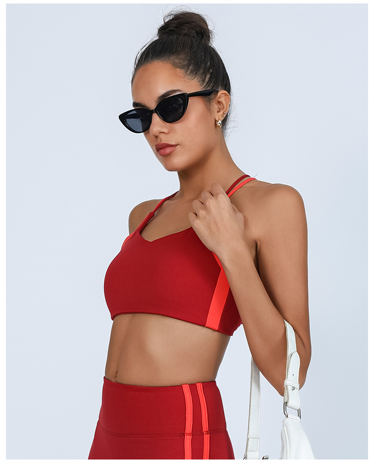 대외 무역 국경 간 요가 조끼 여성의 아름다운 등 대조되는 색상 가슴 패드 랩 가슴 충격 방지 높은 탄성 스포츠 피트니스 브라
