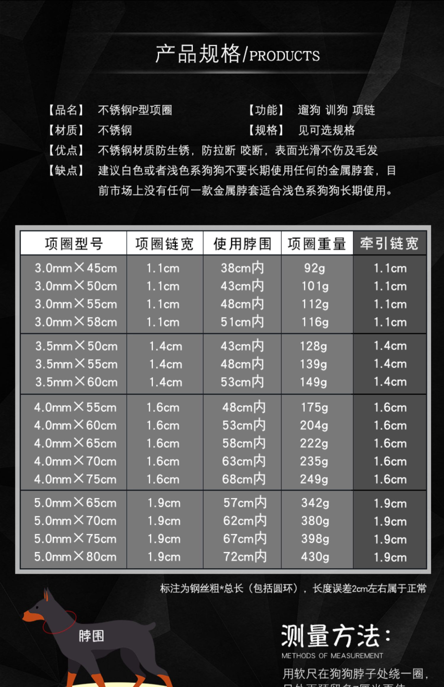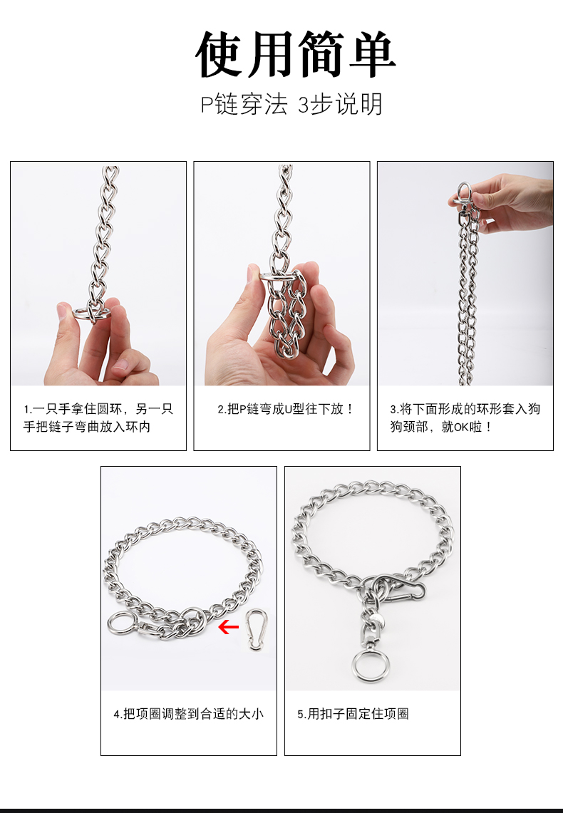 개 목걸이 스테인레스 스틸 독일 셰퍼드 메탈 로트 와일러 개 체인 골든 리트리버 대형 개 훈련 개 안티 오프 넥 슬리브 P 체인