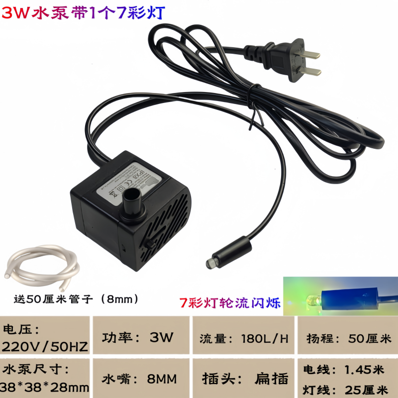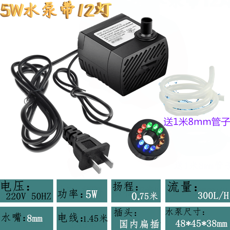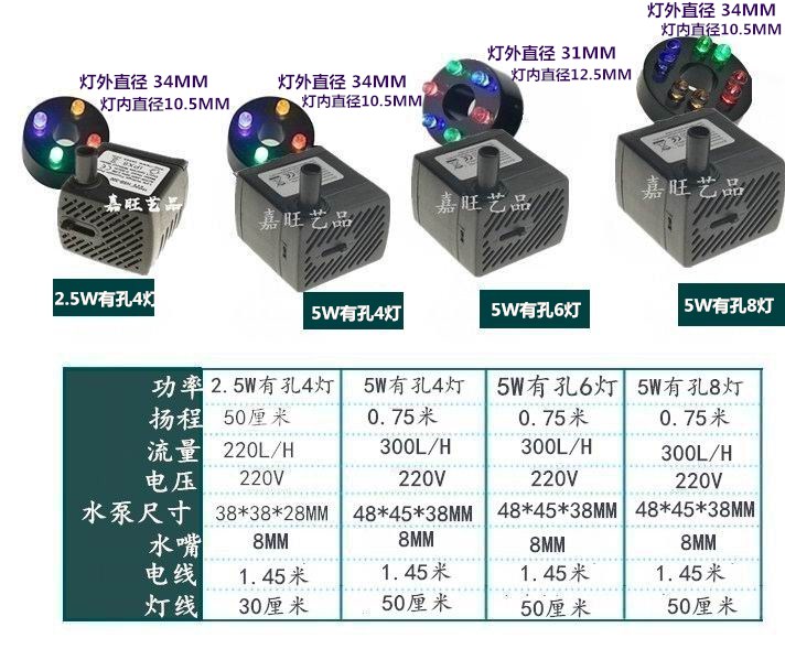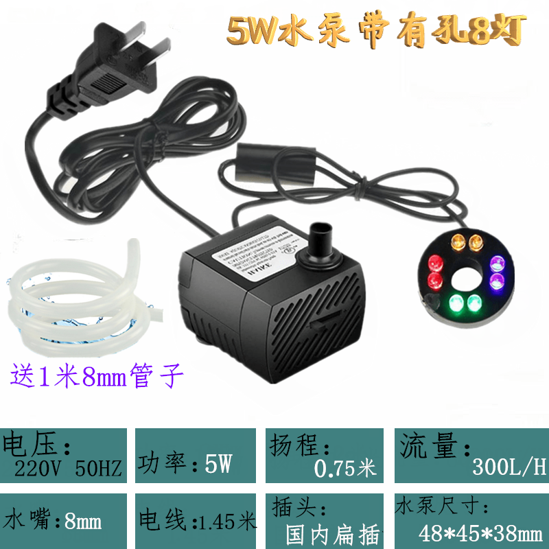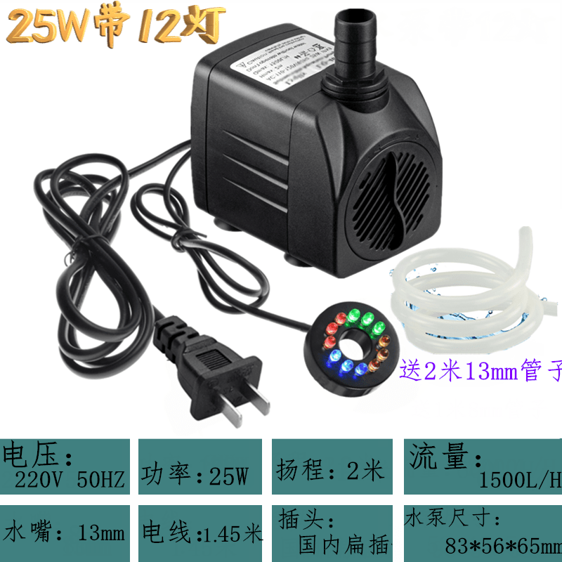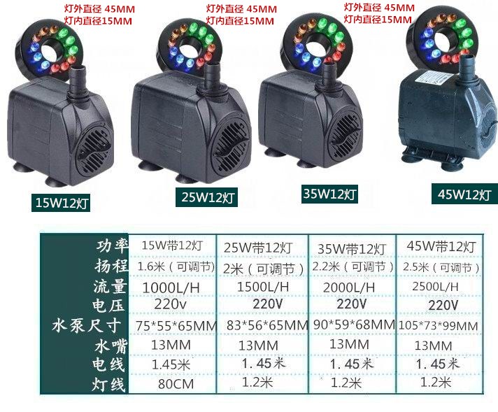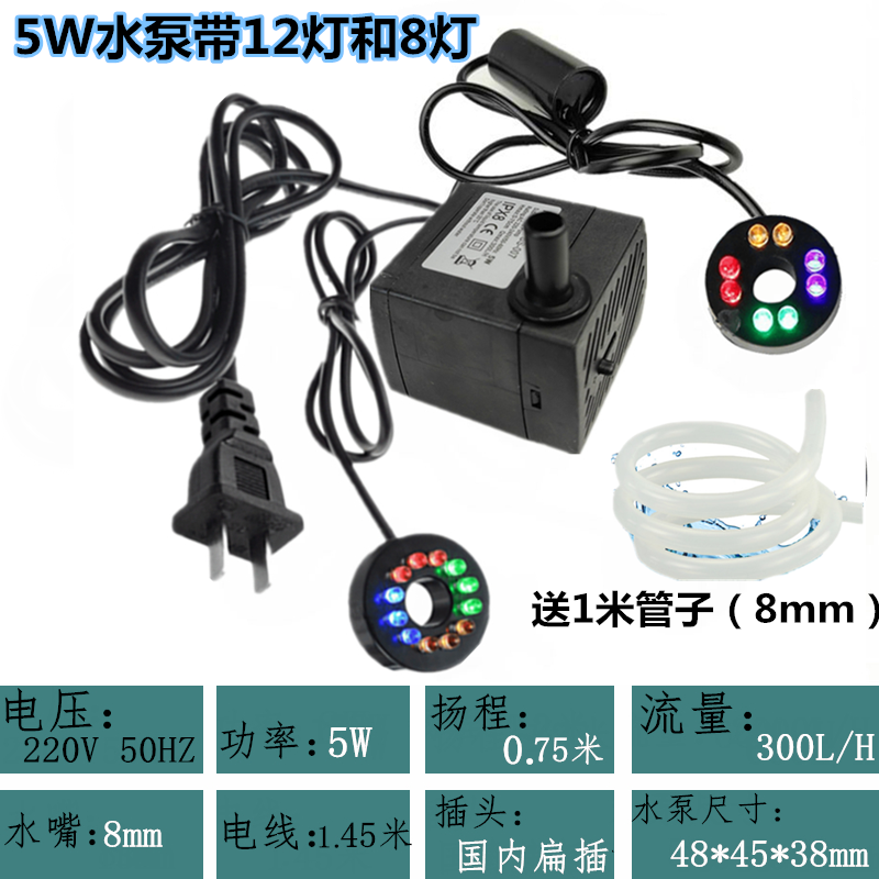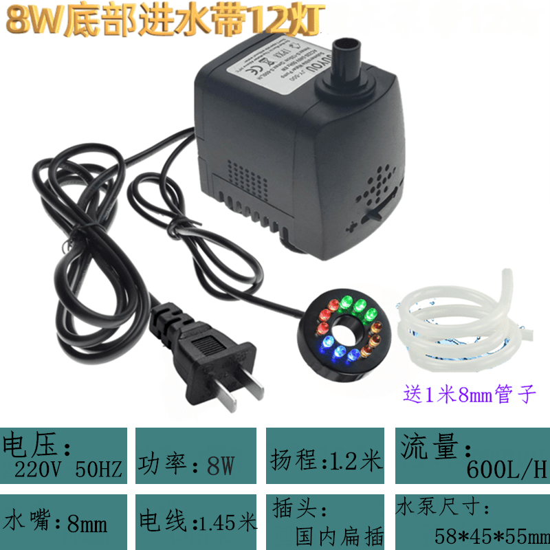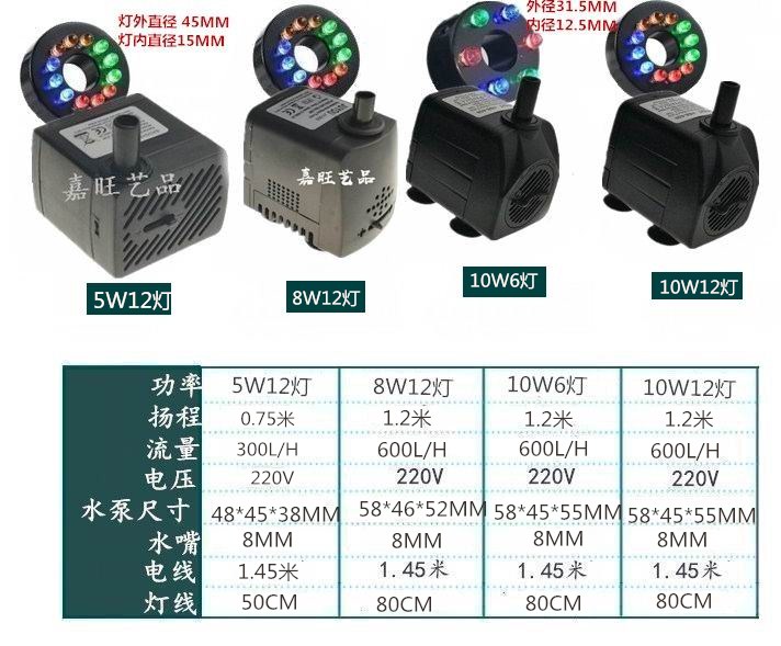 • 8W 워터 펌프에는 구멍이 있고 조명이 12개 있습니다(리프트 1.2m).