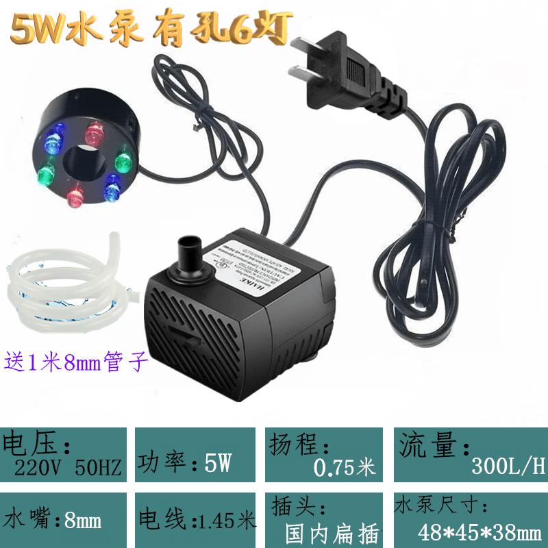 • 구멍 6개 조명이 있는 5W 워터 펌프(리프트 0.75m )