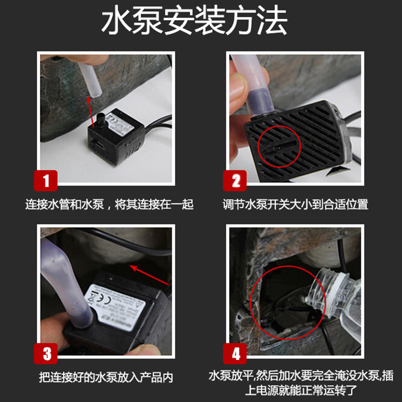 소형 sheung shui 돌 흐르는 물 펌프 공예 바위 풍수 바퀴 펌핑 순환 펌프 물고기 탱크 물 펌프 5W 램프 우송료