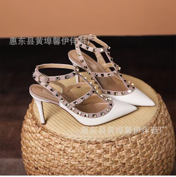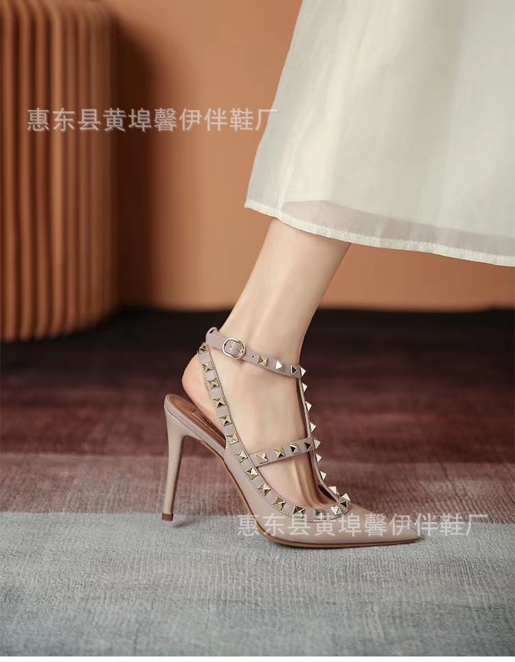 V 홈 리벳 포인팅 하이힐 여성용 스틸레토 힐 스트랩 샌들 아우터웨어 2025 새로운 올 매치 패션 리우 딩스토어 가기