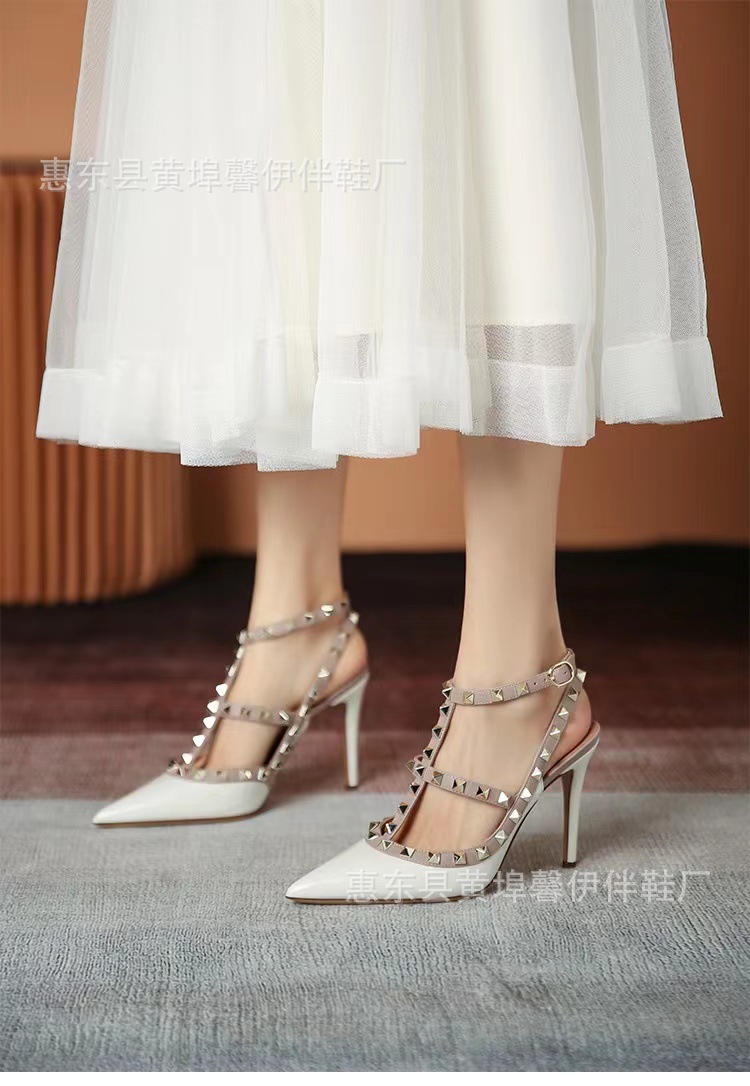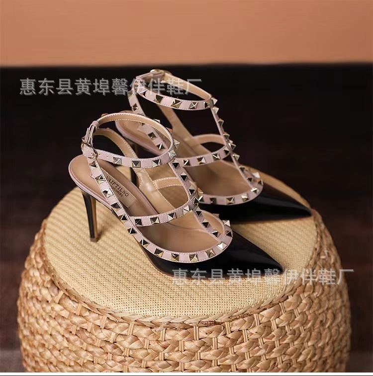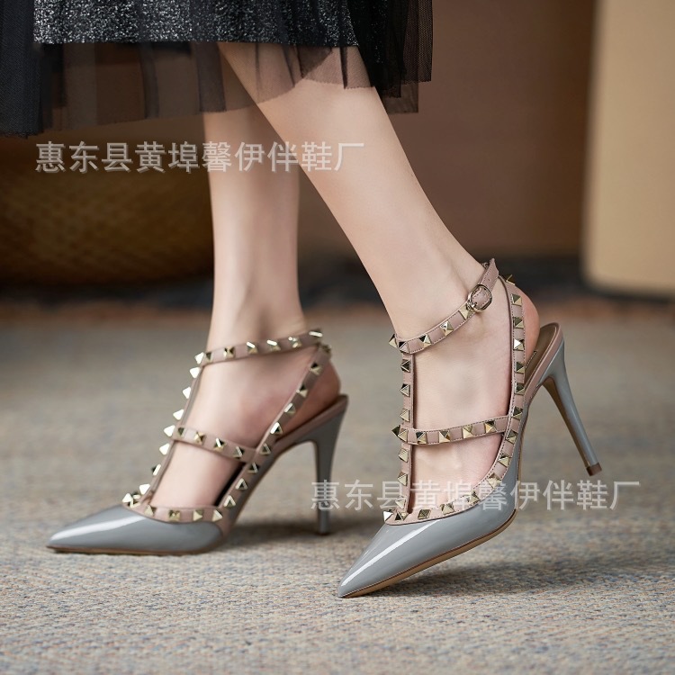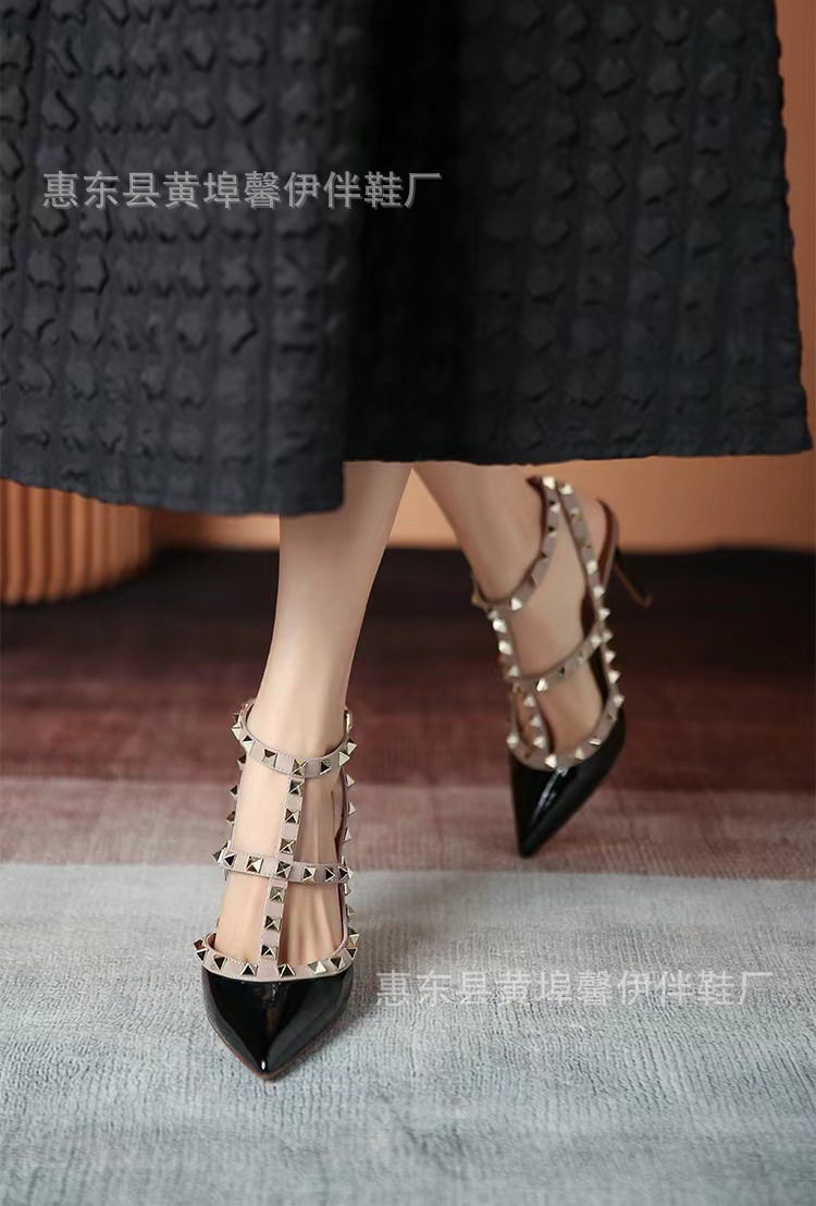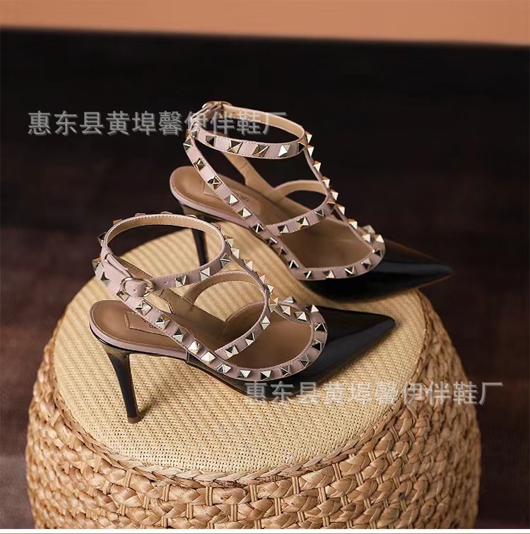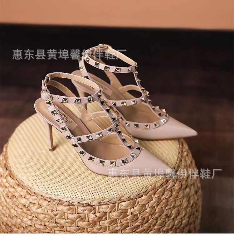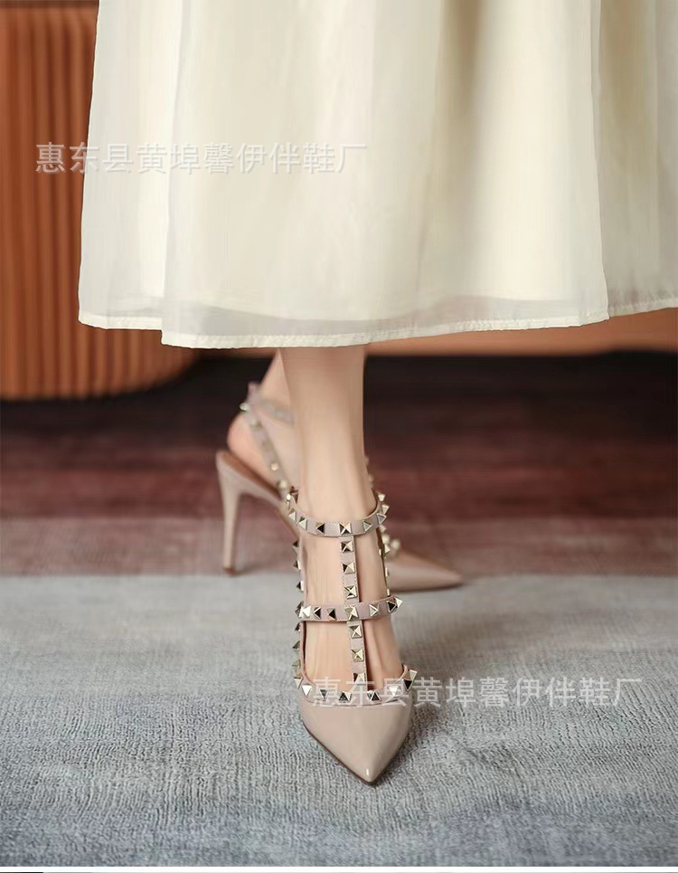 V 홈 리벳 포인팅 하이힐 여성용 스틸레토 힐 스트랩 샌들 아우터웨어 2025 새로운 올 매치 패션 리우 딩