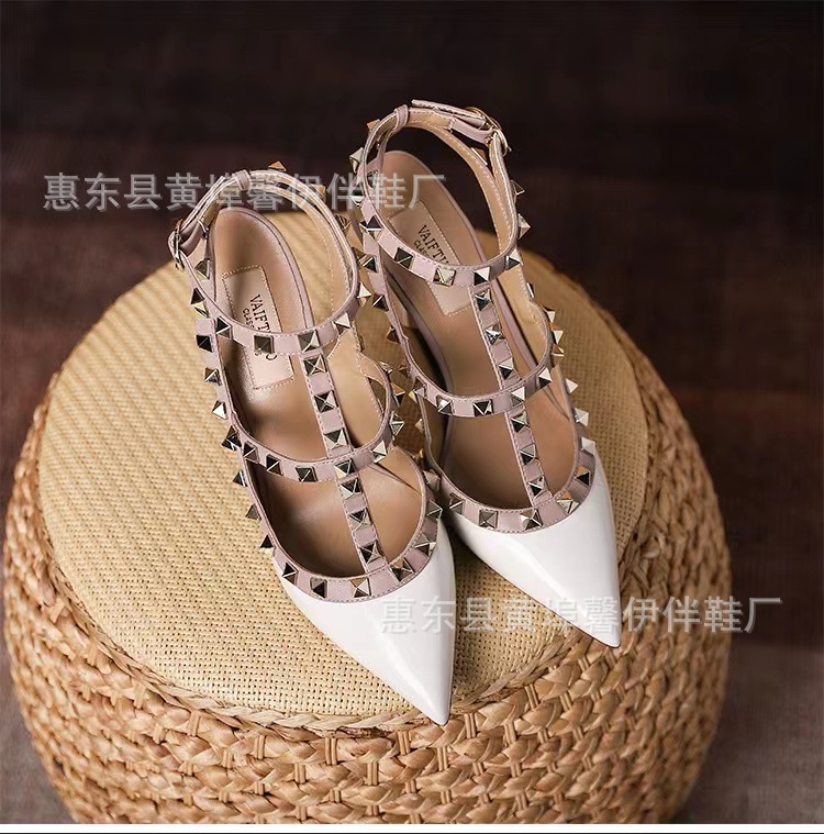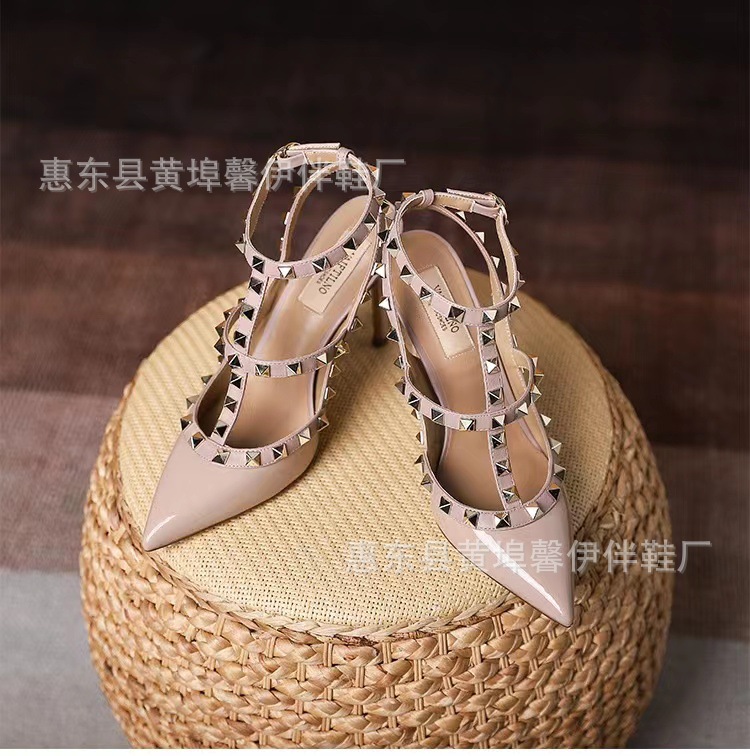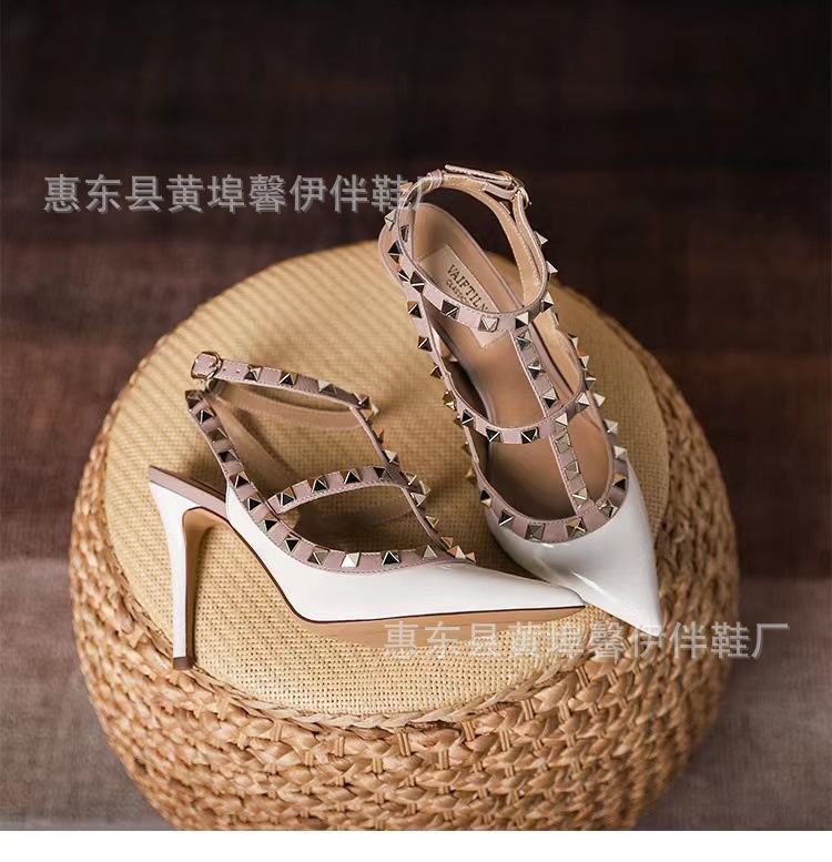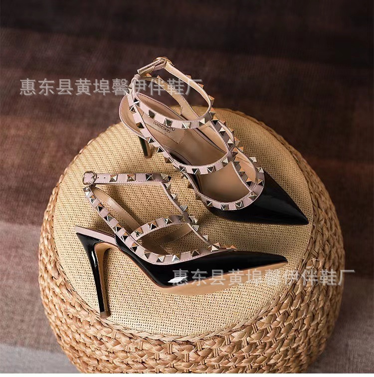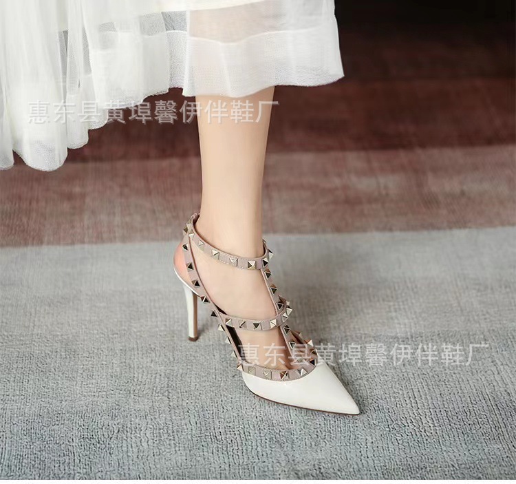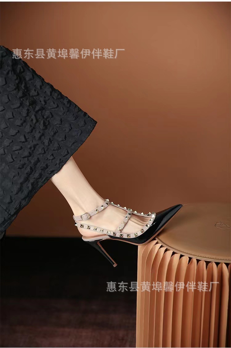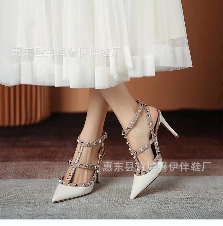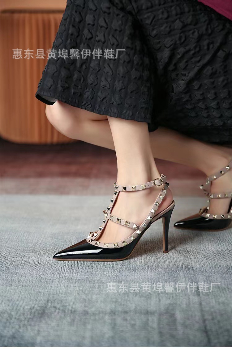 V 홈 리벳 포인팅 하이힐 여성용 스틸레토 힐 스트랩 샌들 아우터웨어 2025 새로운 올 매치 패션 리우 딩