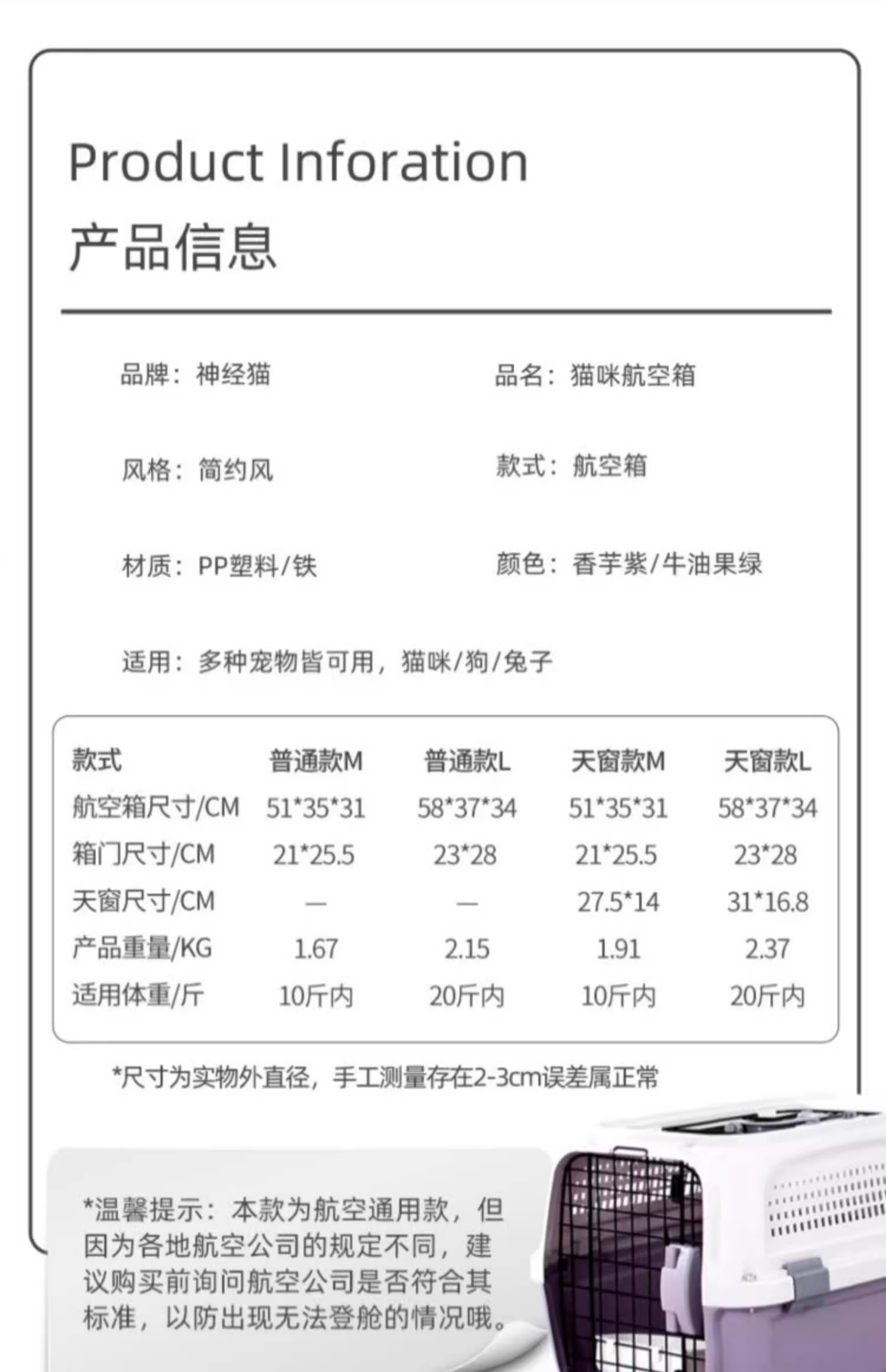 • 새로운 모델 [채광창 모델] 클래식 그레이 및 블랙 M은 IATA 항공 표준을 준수합니다(개와 고양이의 경우 9kg세 미만 권장)