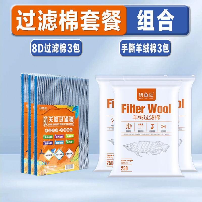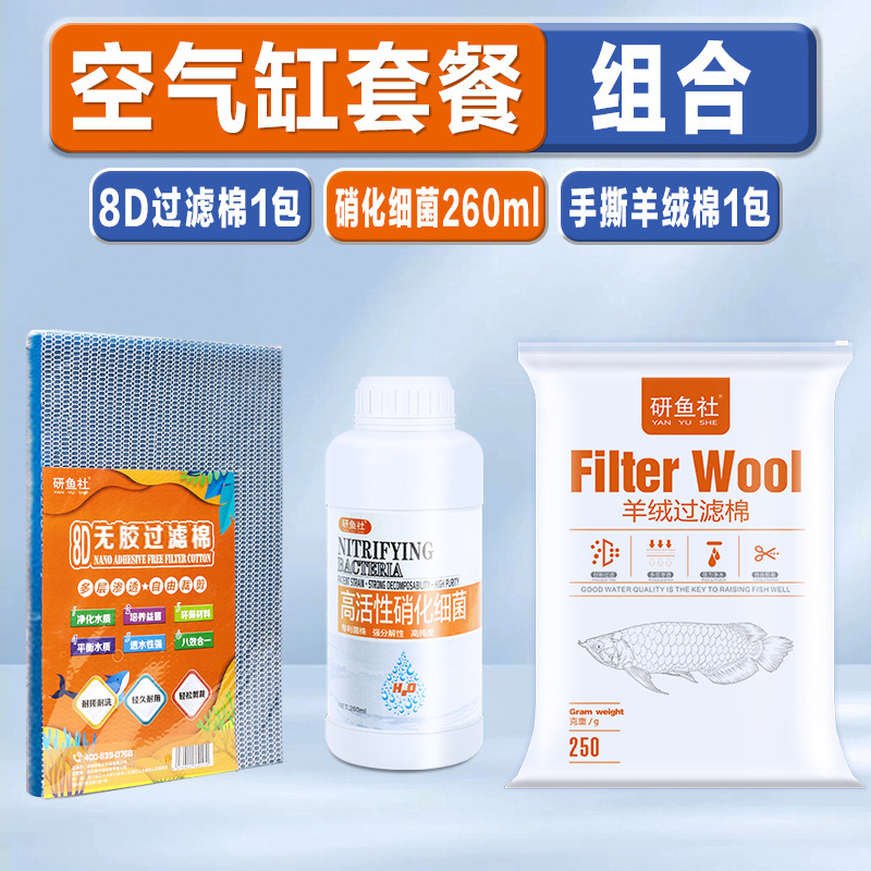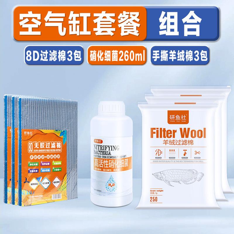 • [에어실린더 패키지] 손으로 찢은 캐시미어 면 250g [3팩] + 8D 필터면 [3팩] + 질산화균 260ML [1병] - (하단 탱크 필터 선택)