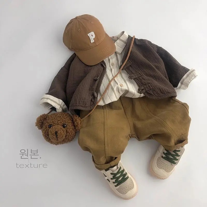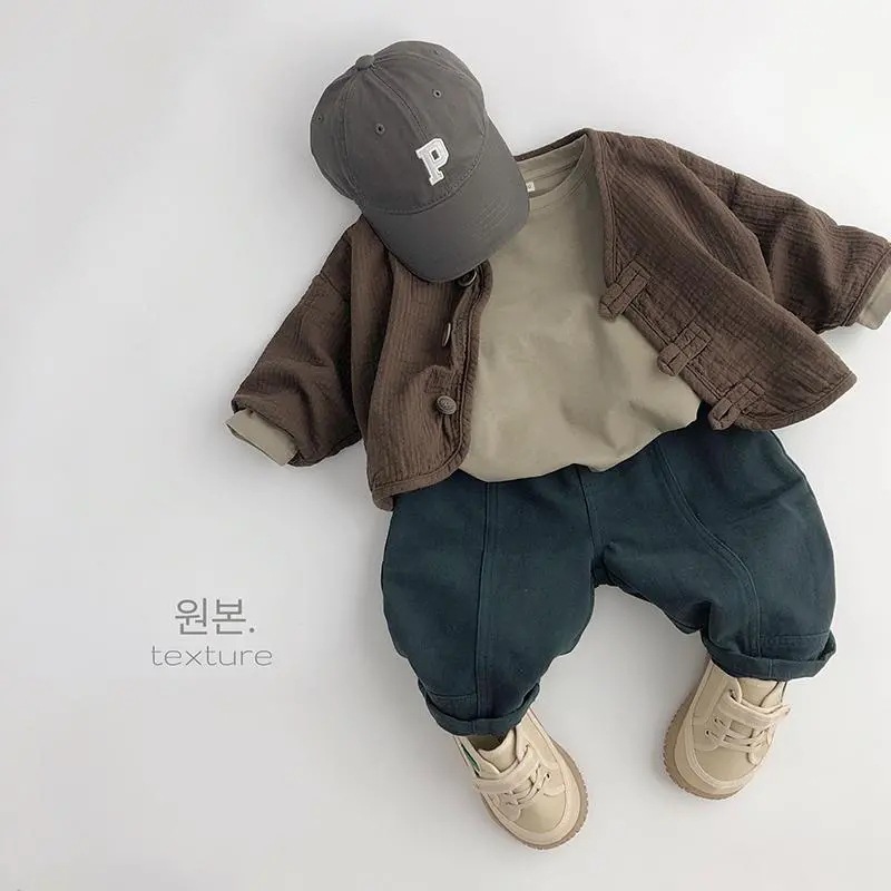 양질의 소 ~ 강한 푸시 ~ 레트로 어린이 봄 가을면 및 린넨 코트의 한국어 버전 남성과 여성의 바오 외국 스타일 카디건 아트 차오 센