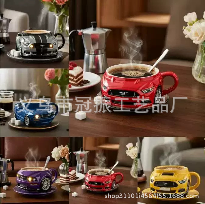 국경 간 잘 생긴 럭셔리카 로고 커피 컵 머그잔 수지 아트 장식품 스테인레스 스틸 코어 장식품스토어 가기
