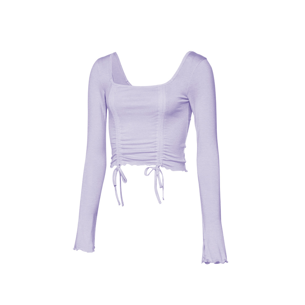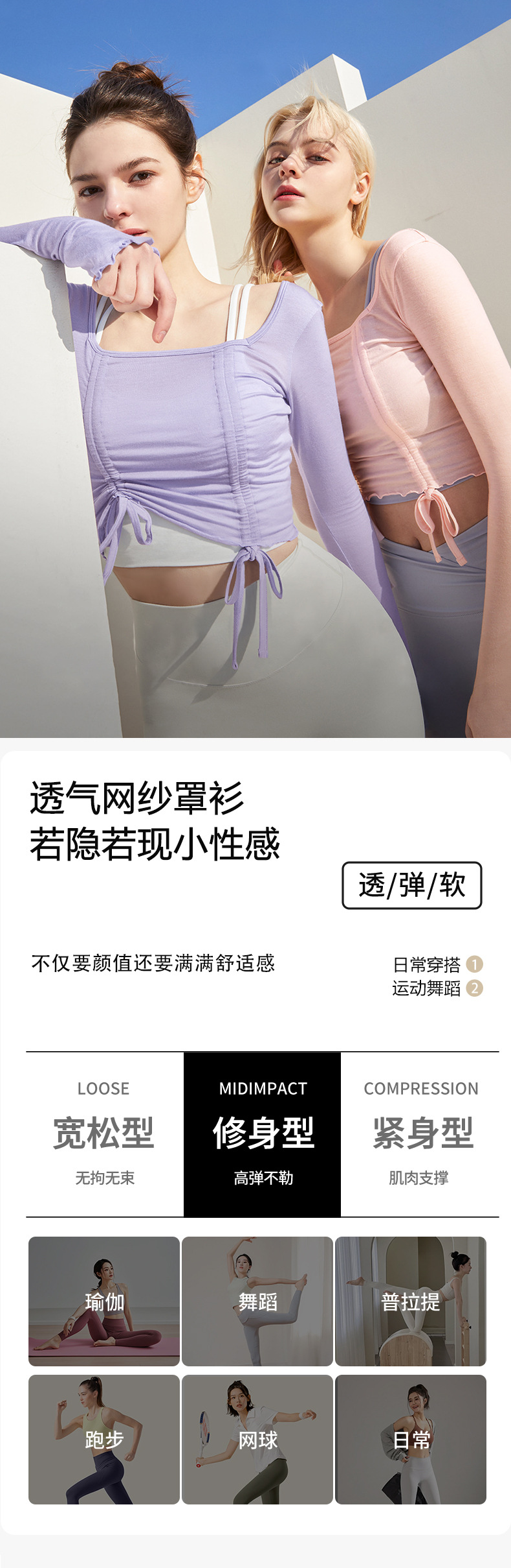 새로운 드로스트링 주름 스퀘어 칼라 긴 소매 스포츠 티셔츠 여성 패션 스트랩 메쉬 요가 탑 아우터베이스 셔츠스토어 가기