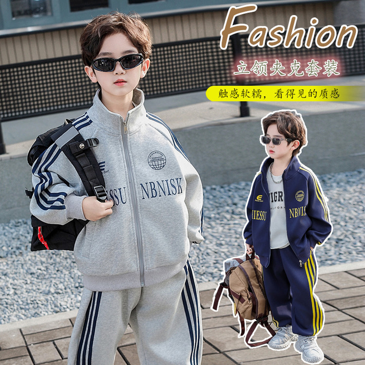 7692 소년 멋진 핸섬 세트 봄과 가을 새로운 어린이 봄웨어 스웨트 셔츠 재킷 소년 스포츠 투피스 세트스토어 가기