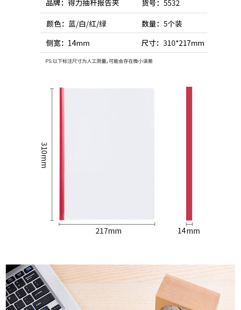 델리 5532 로드 클립로드 파일 클립 A4 보고서 클립 백 폭 14mm 폴더 삼각형 클립 5 팩