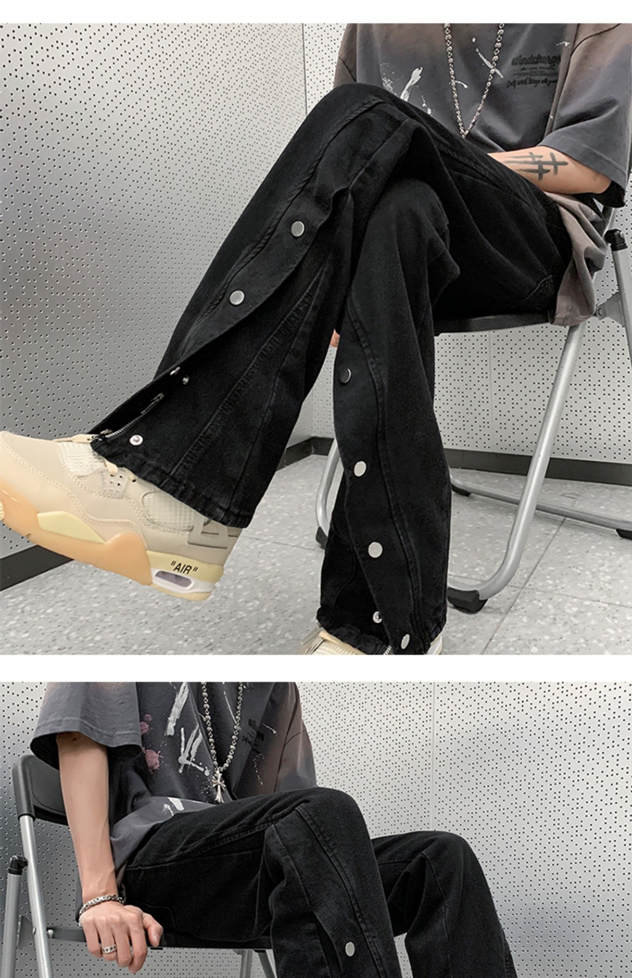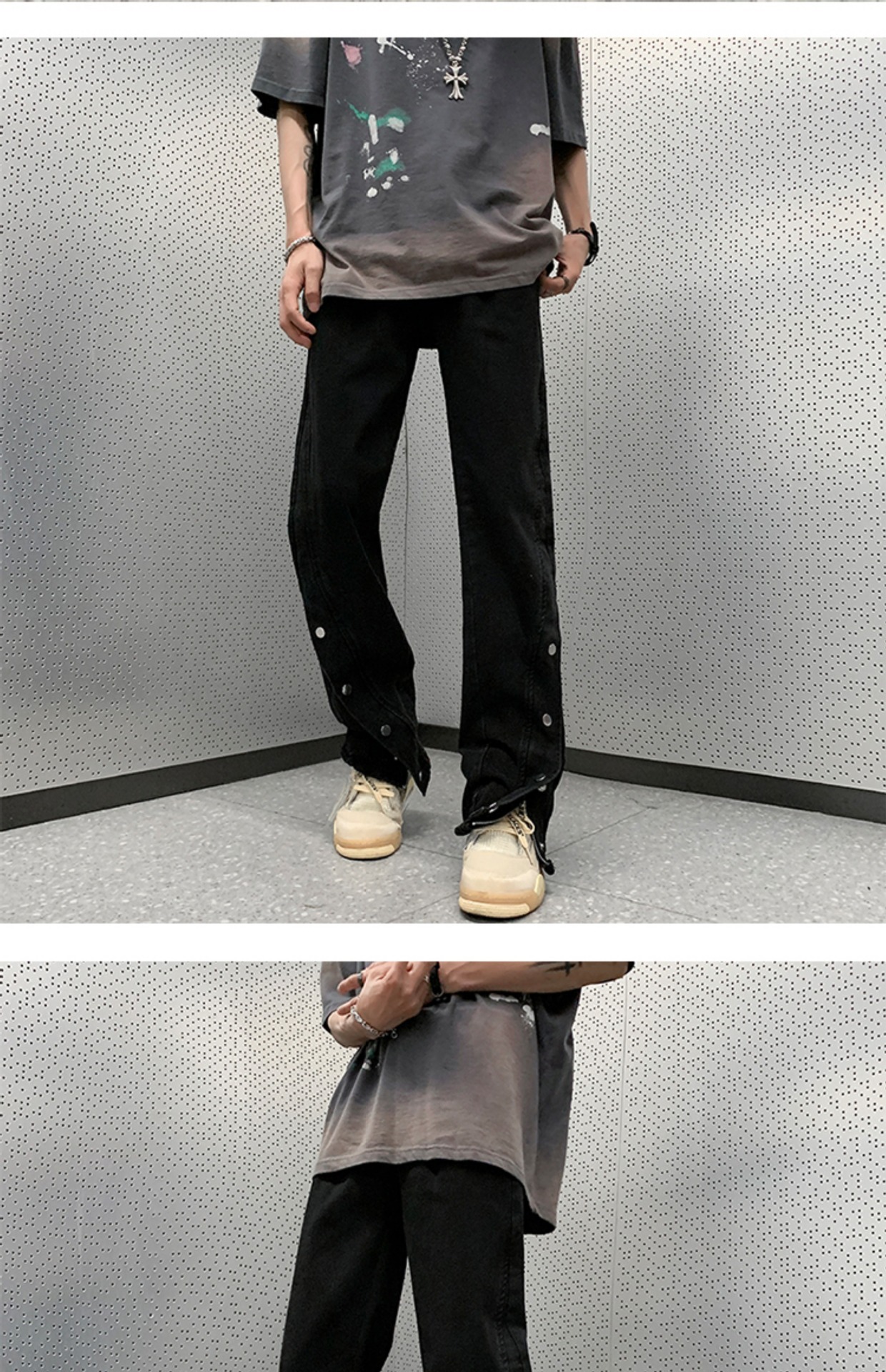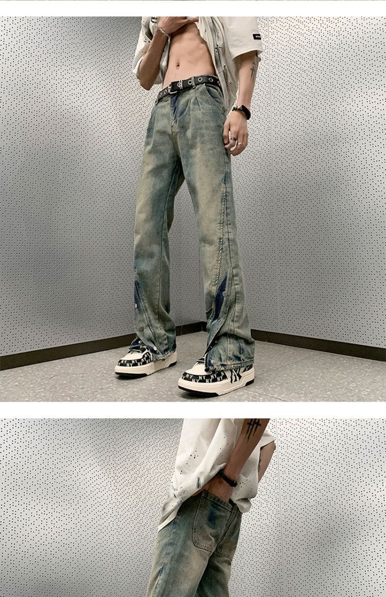 미국식 하이 스트리트 힙합 트렌디 브랜드 청바지 남성용 루즈 스트레이트 세척 올드 브레스트 디자인 마이크로 팬츠