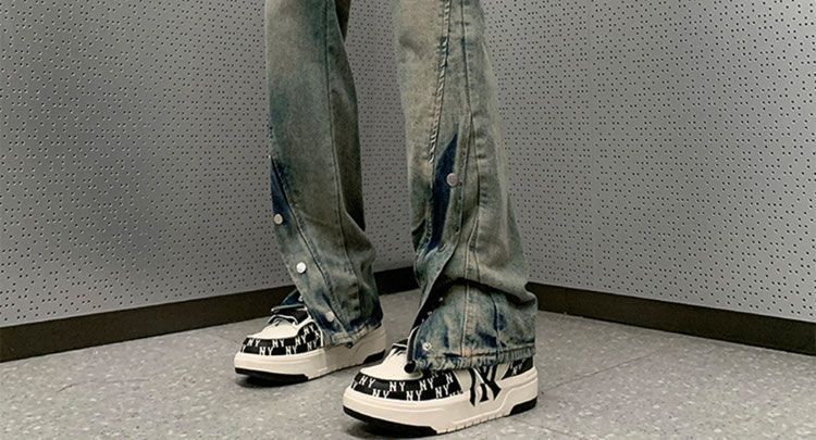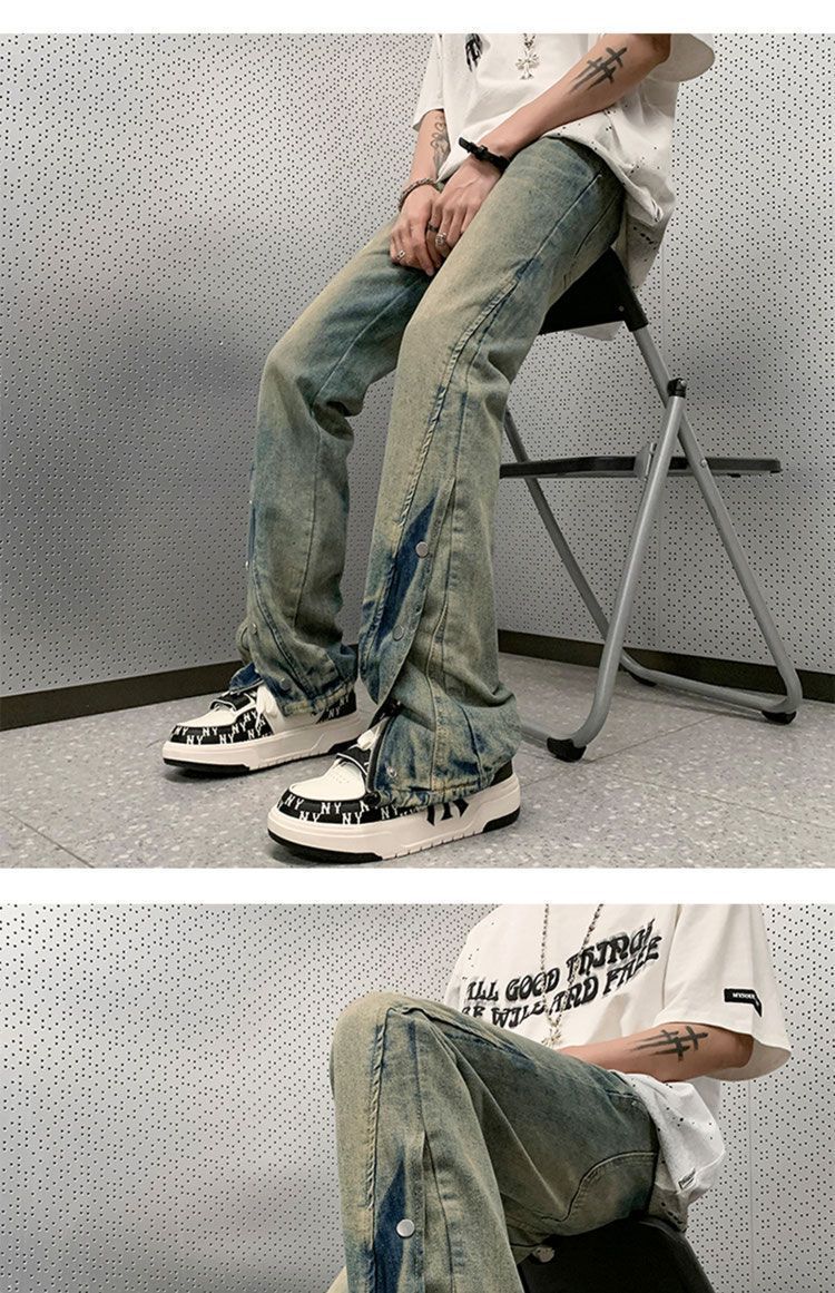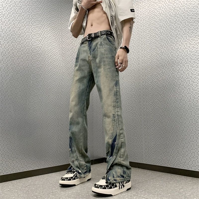 미국식 하이 스트리트 힙합 트렌디 브랜드 청바지 남성용 루즈 스트레이트 세척 올드 브레스트 디자인 마이크로 팬츠스토어 가기