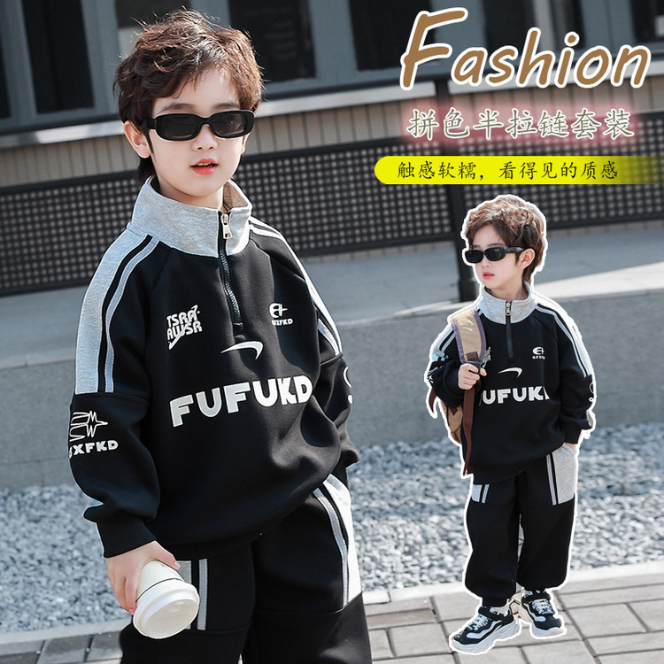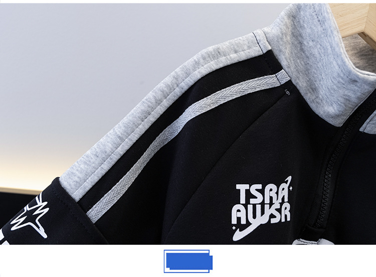 7694 소년 봄 착용 세트 2025 새로운 도착 더피 잘 생긴 어린이 봄과 가을 스타일 스포츠 소년의 유행 투피스 세트스토어 가기
