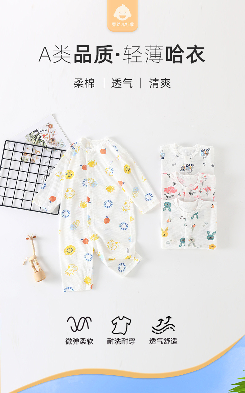 婴儿连体衣夏装儿衣服夏季薄款宝宝空调服春装睡衣长袖哈衣女스토어 가기