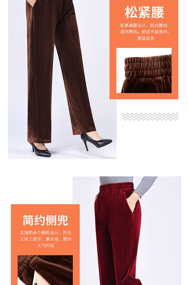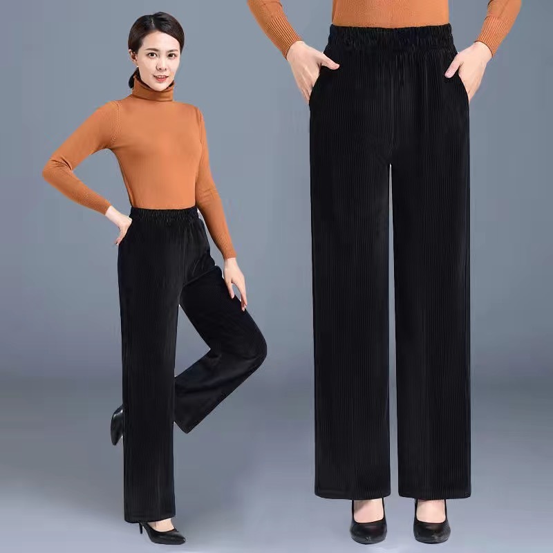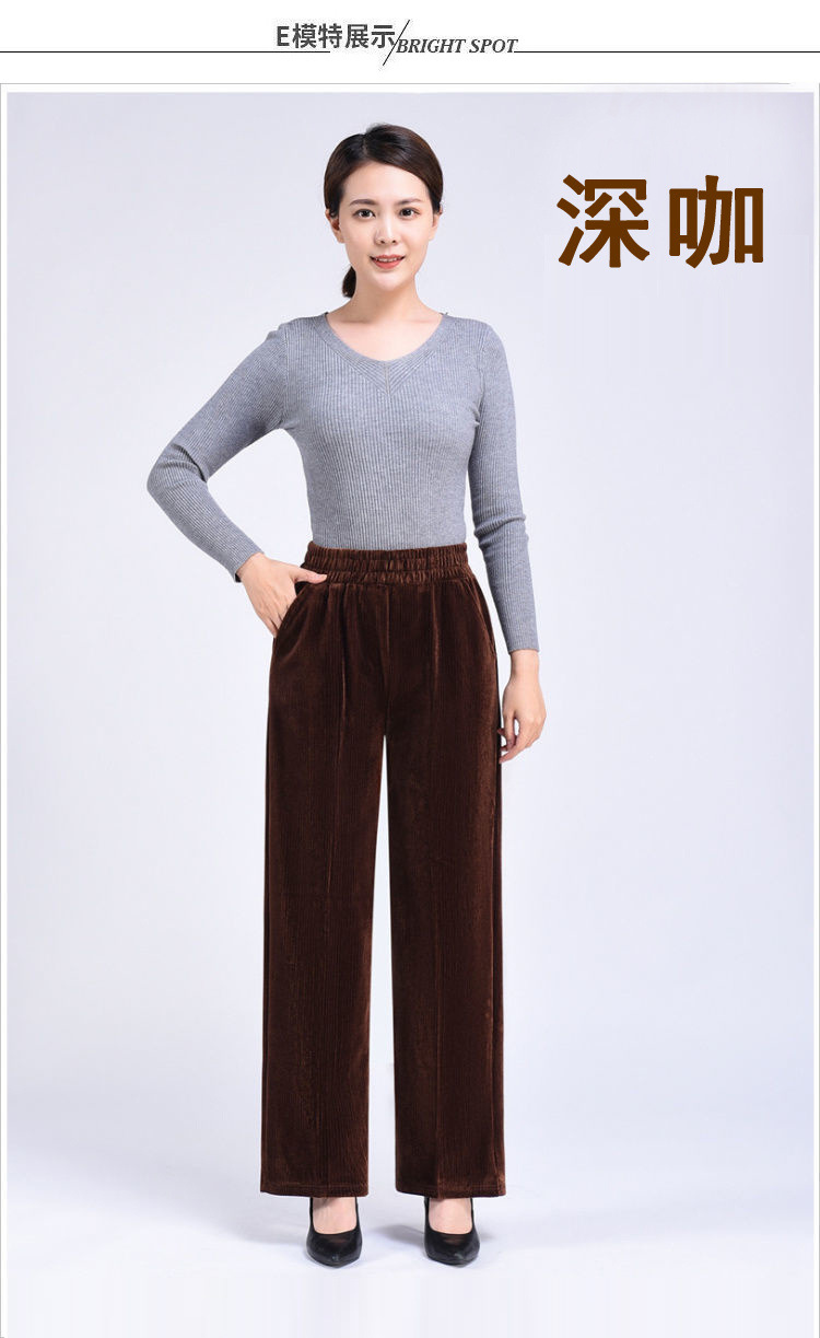 코듀로이 엄마 스트레이트 캐주얼 바지 패딩 벨벳 넓은 다리 바지 여성 중년 및 노인 느슨한 여성 줄무늬 바지