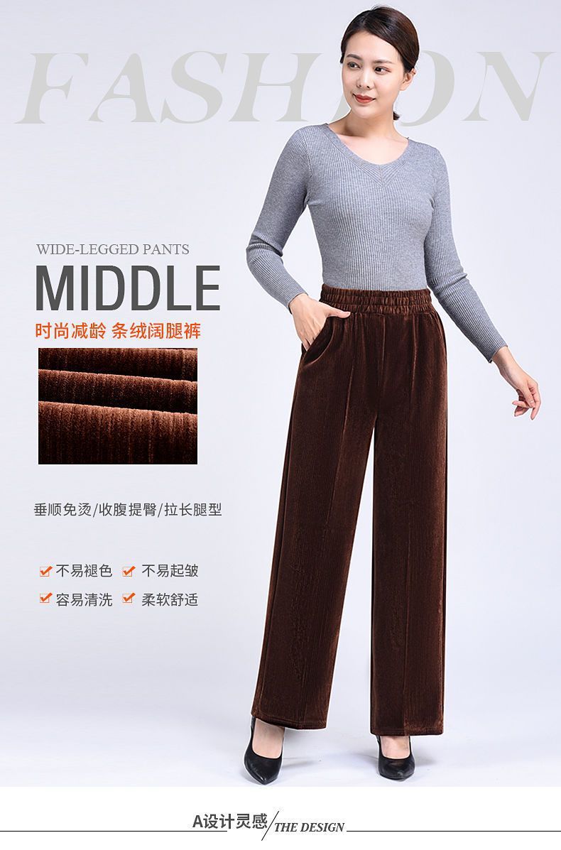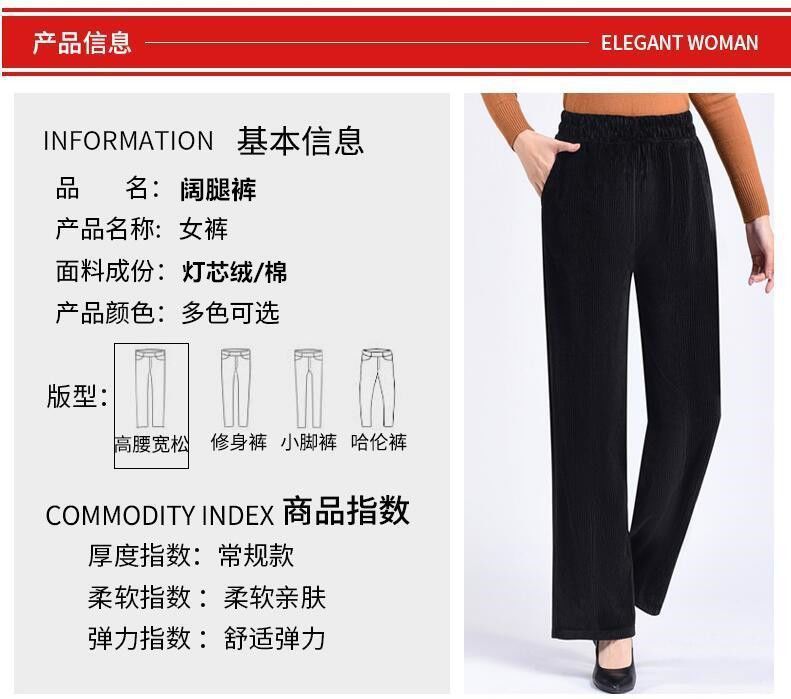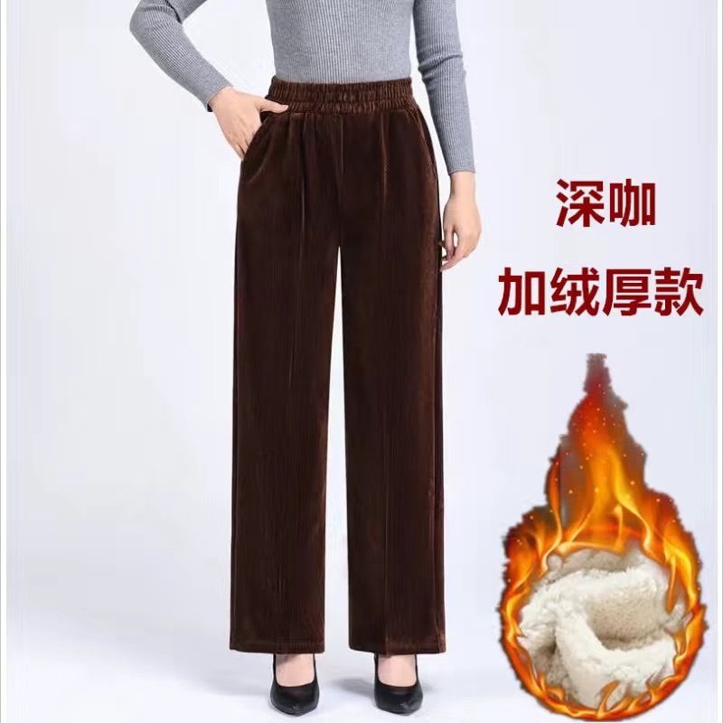 코듀로이 엄마 스트레이트 캐주얼 바지 패딩 벨벳 넓은 다리 바지 여성 중년 및 노인 느슨한 여성 줄무늬 바지스토어 가기