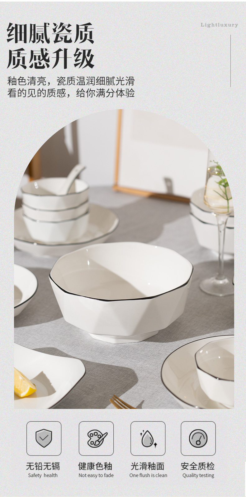 식기 세트 세라믹 밥 그릇 가정용 2024 새로운 높은 색상 가치 그릇 및 젓가락 가벼운 고급 고급 속유약 색상 선물 제공스토어 가기