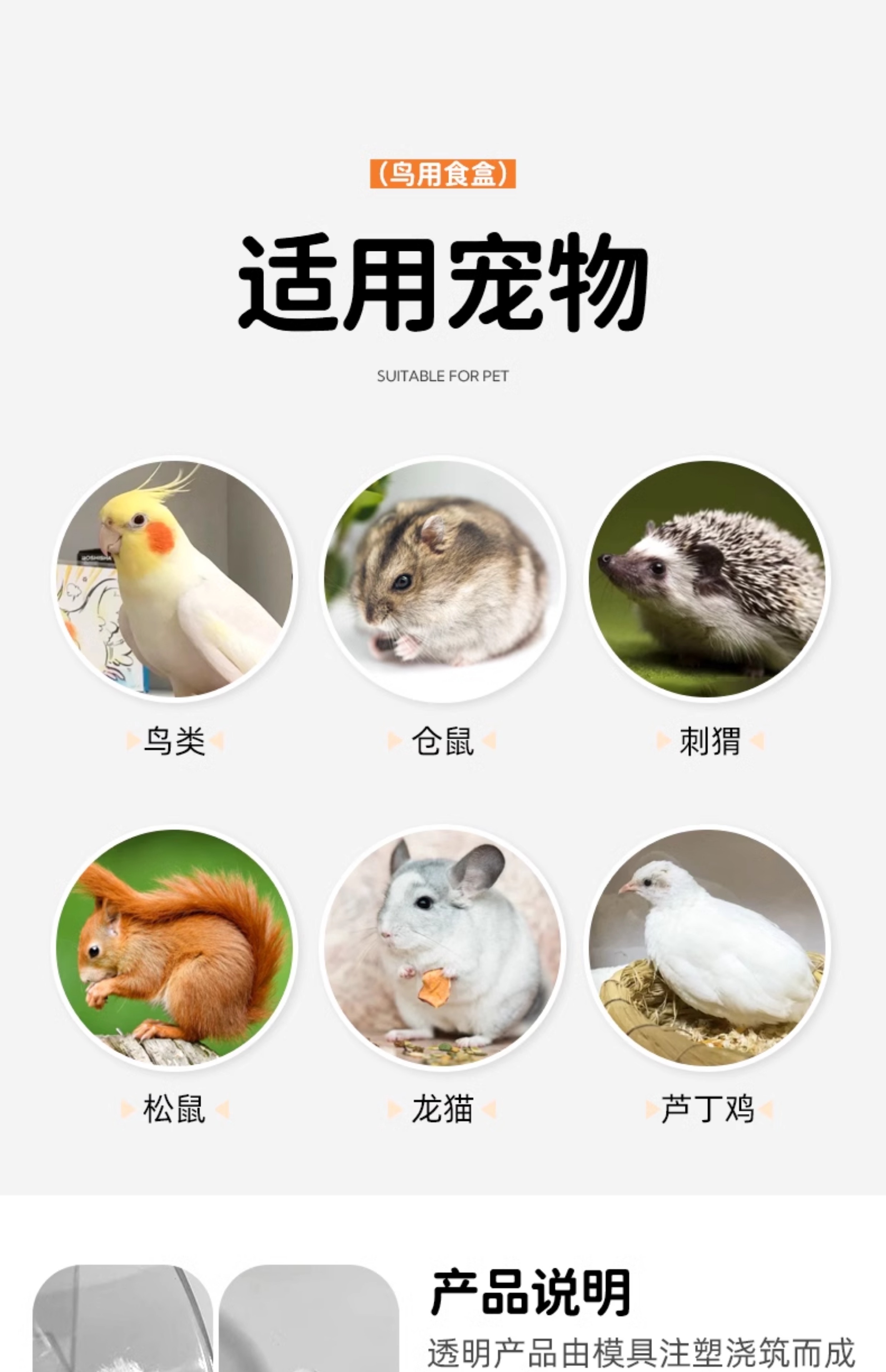 • 말굽형 투명 식품 상자*2(특수 케이지에 적합)