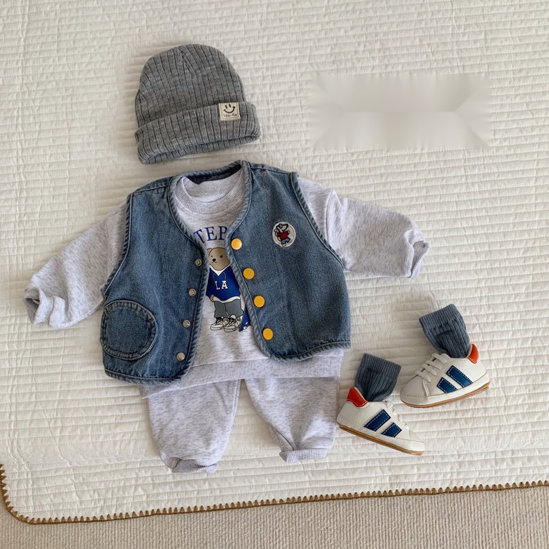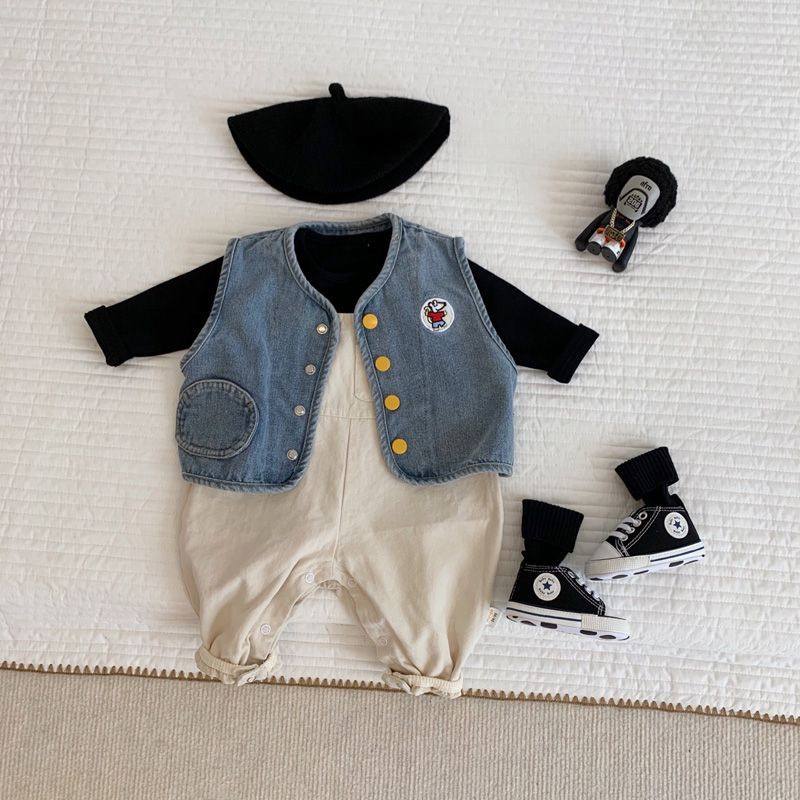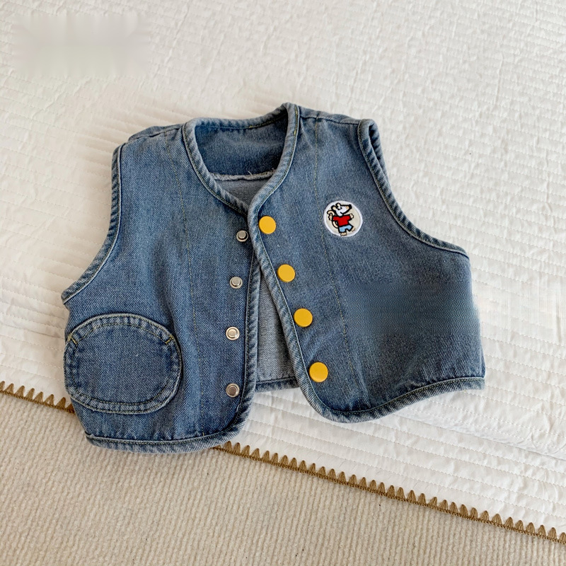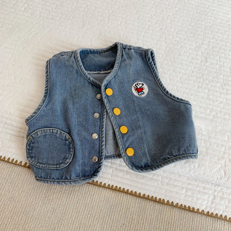 봄과 가을 남자와 여자 아기의 중립 데님 조끼 아기의 외국식 웨이스트 코트 올 매치 재킷