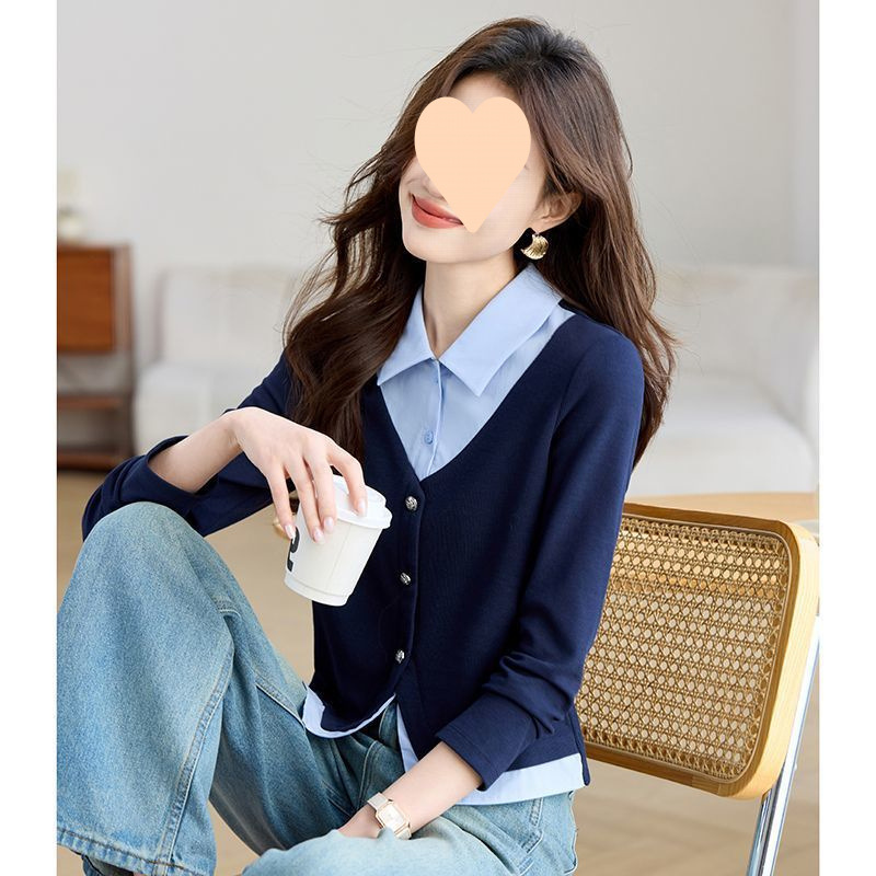 가짜 투피스 콘트라스트 컬러 바느질 긴팔 셔츠 여성 2025 봄 새로운 패션 슬림 디자인 올매치 탑 여성