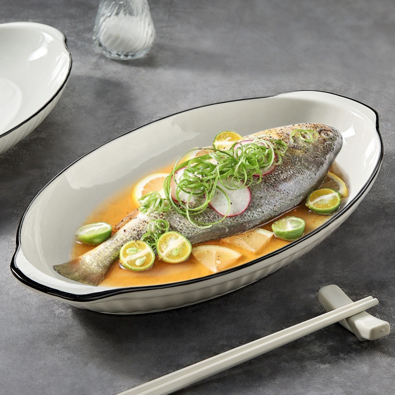 바이노럴 세라믹 어판 가정용 2024 새로운 스타일 찐 어판 센스 대형 어류 분지 생선 그릇 팩