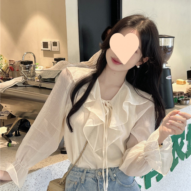 2025 새로운 봄과 가을 긴 소매 쉬폰 셔츠 여성용 프랑스 스타일 달콤한 느슨한 셔츠스토어 가기